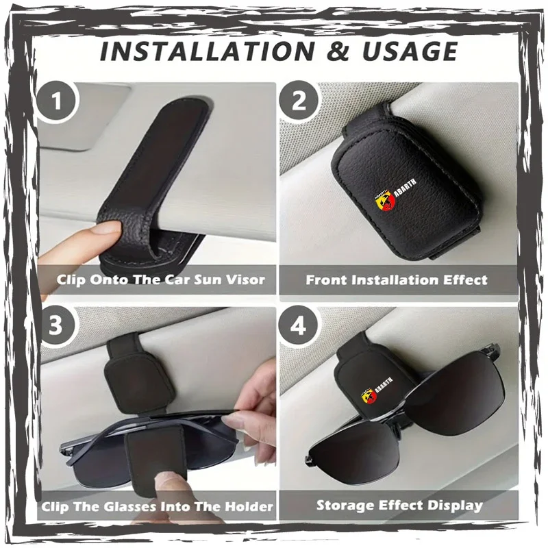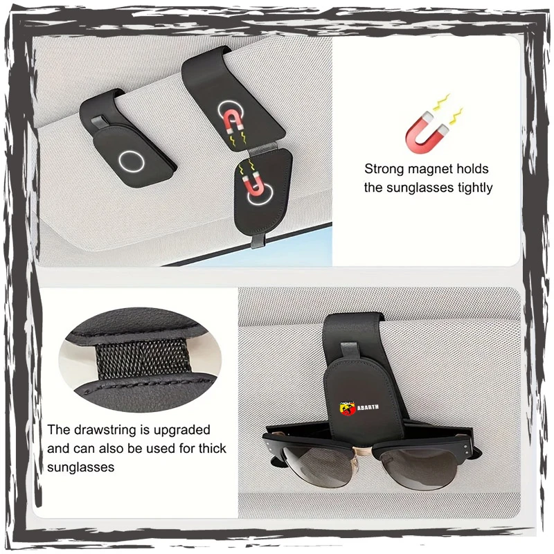 Car glasses frame magnetic PU leather fashion glasses clip For Abbas Abarth Punto 124/125/500 Stilo Ducato Car Accessories
