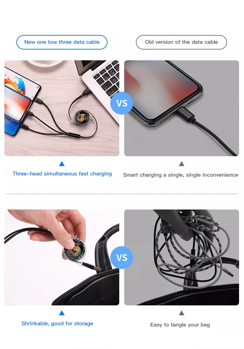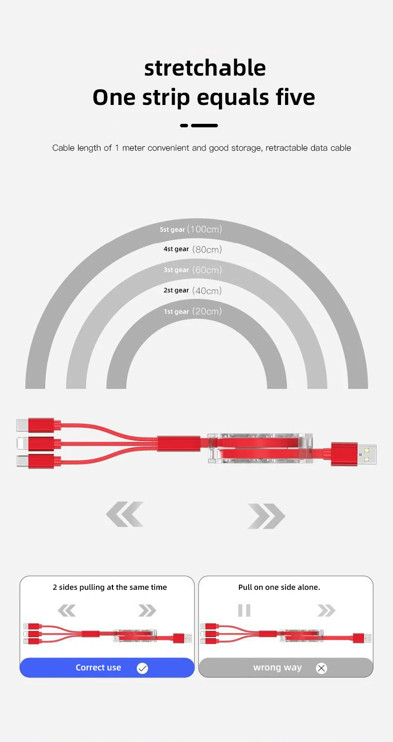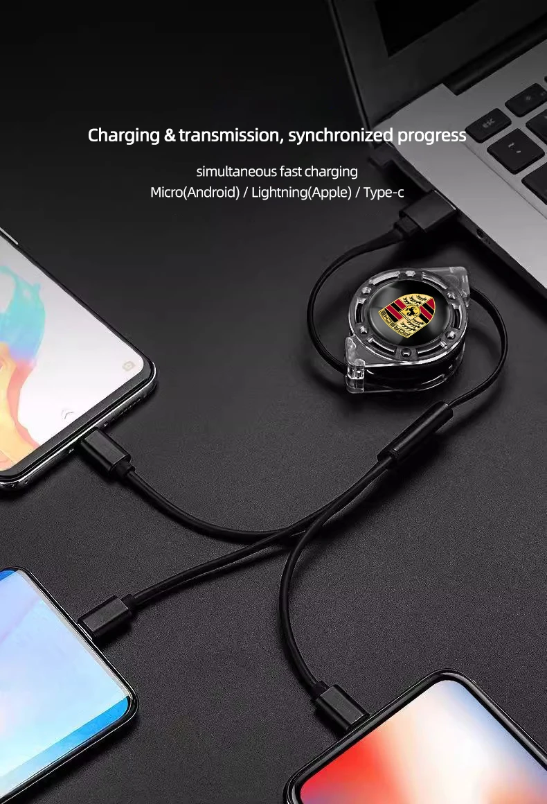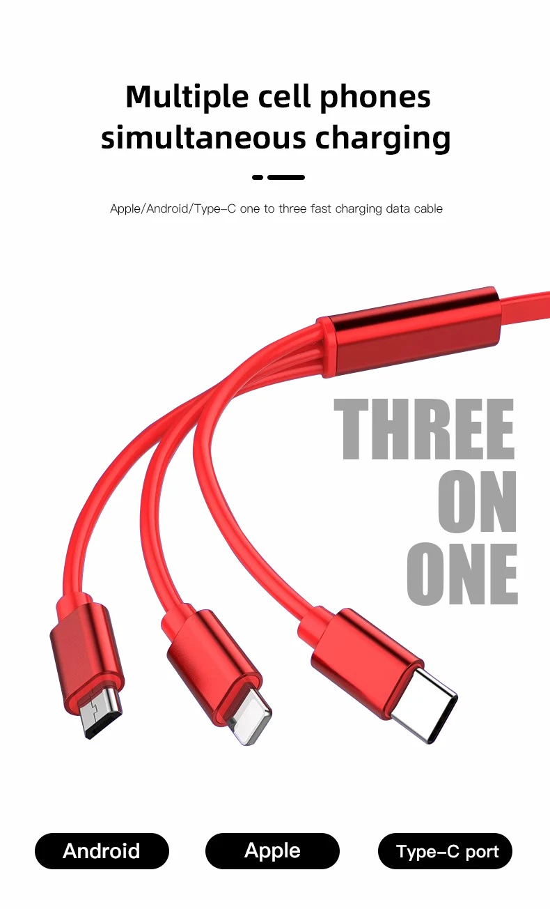 >> Three charging ports, you can charge three devices at the same time with one charging cable.