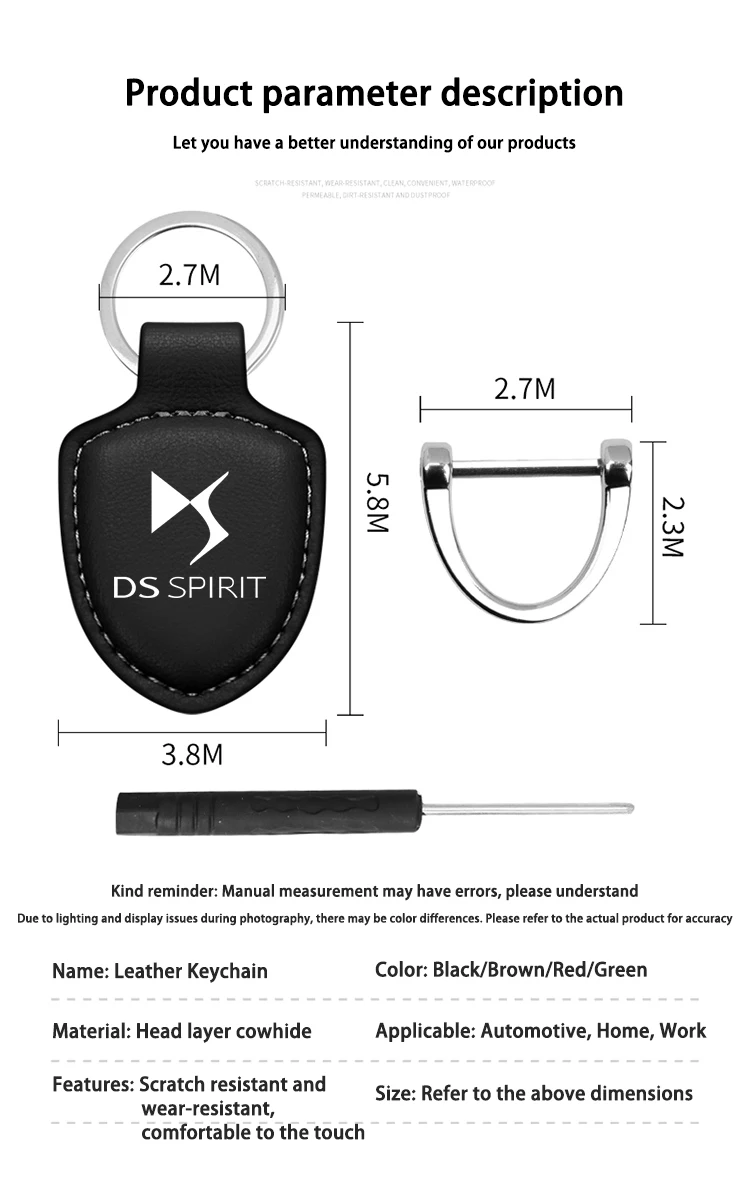 Car Shield Leather Keychain Key Ring Pendant Holder Gift For DS DS4S DS5 5LS DS3 DS4 DS6 DS7 DS9 WILD RUBIS SPIRIT Accessories