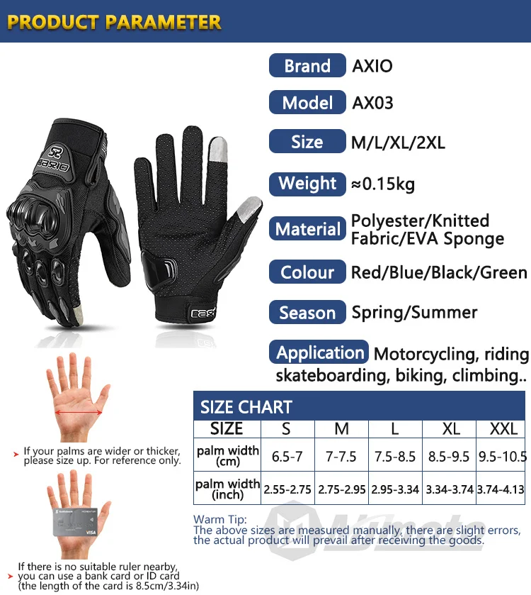 AXIO Summer Motorcycle Cycling Glove Touchscreen Motocross Glove ATV MTB Mesh Breathable Motorbike Glove Wear-resistant Non-slip