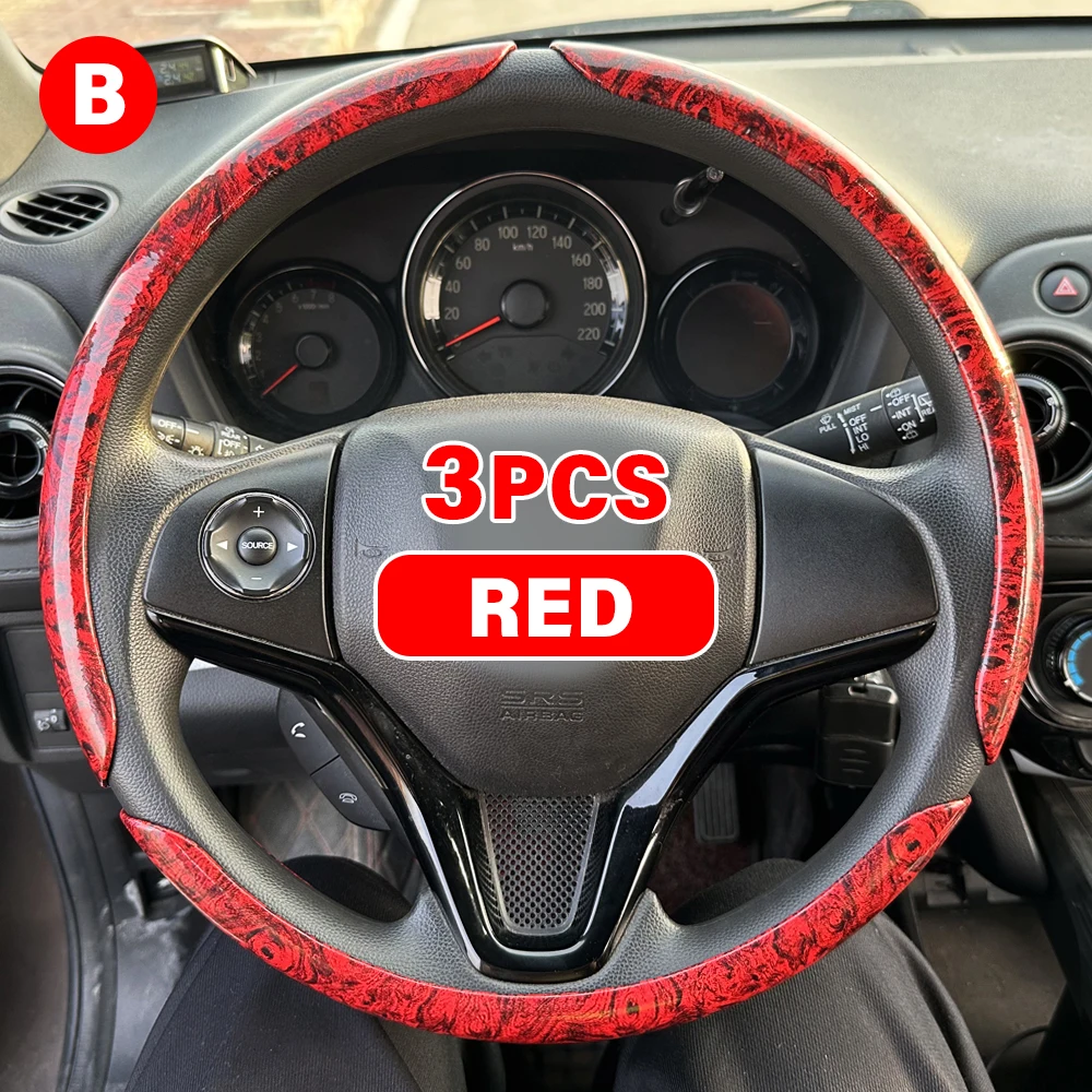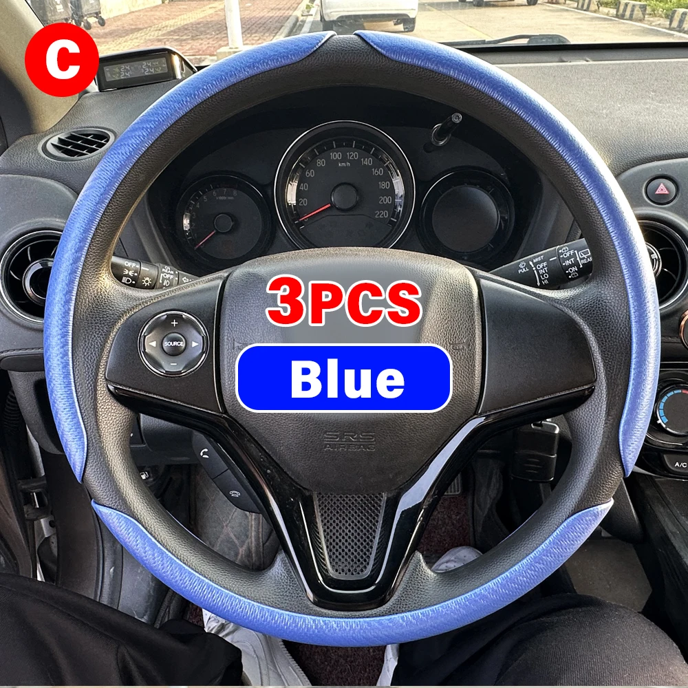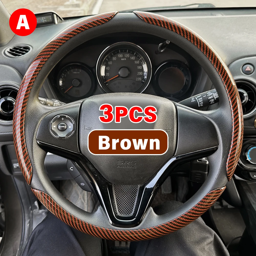 2/3PCS Carbon Fiber Silicone Car Steering Wheel Cover Custom Anti-skid Booster Cover Accessories 38cm Auto Deco Body Kit