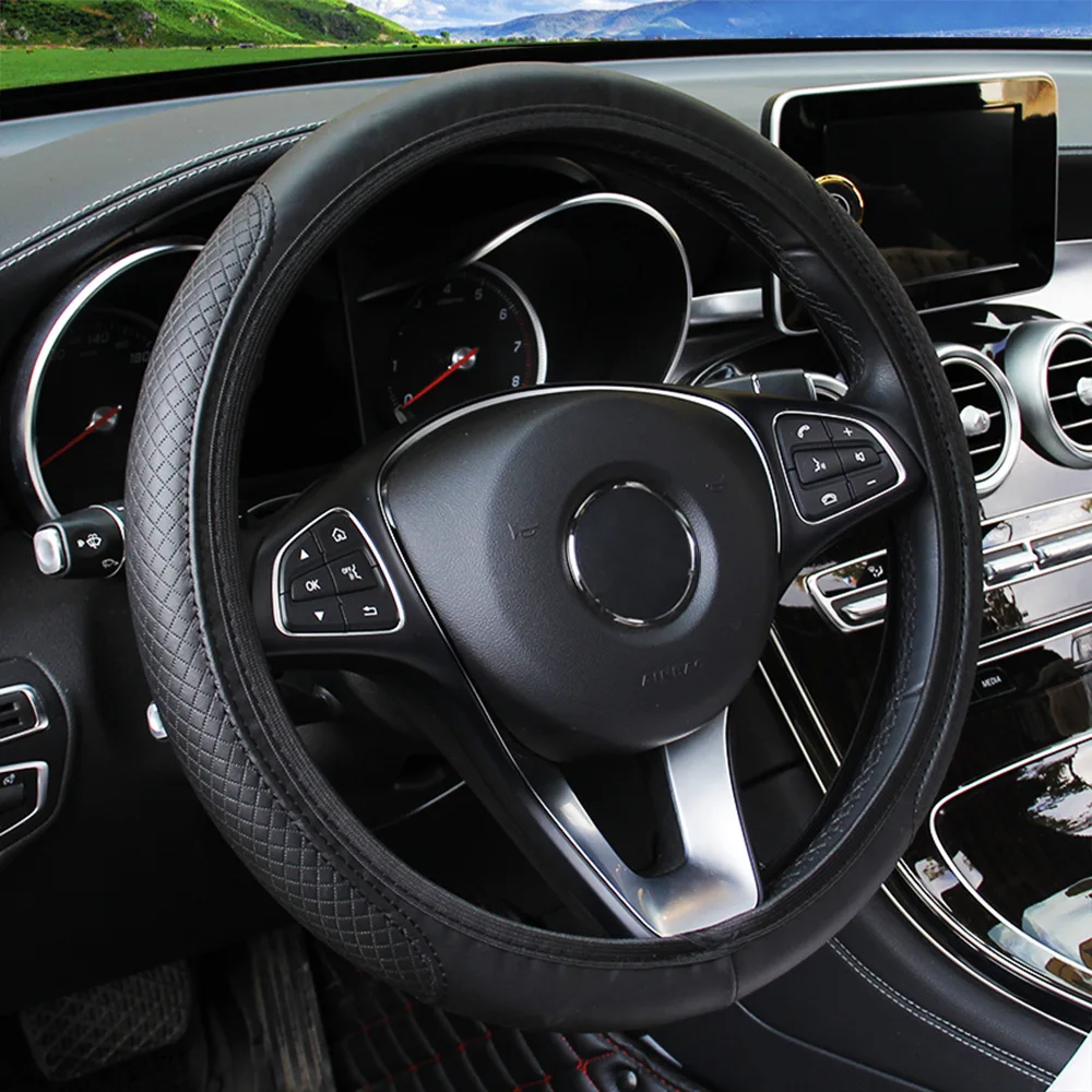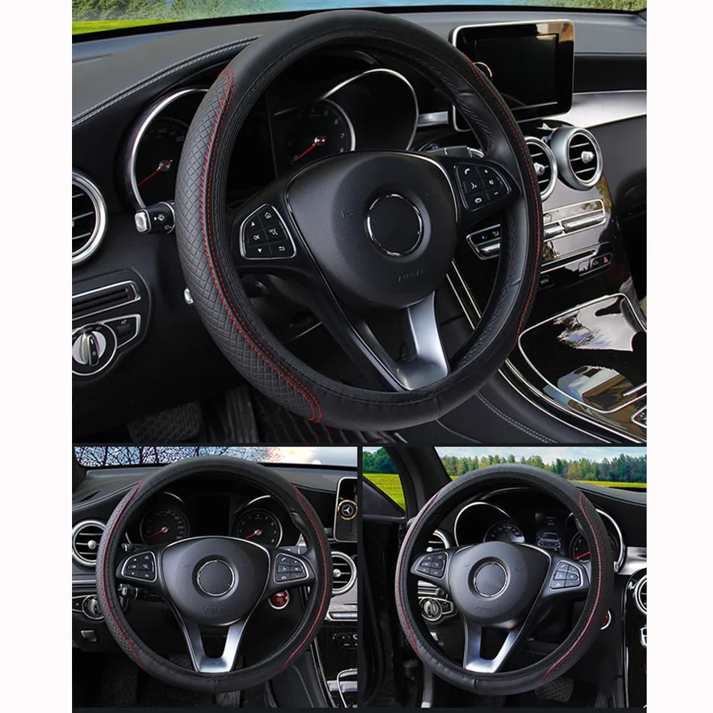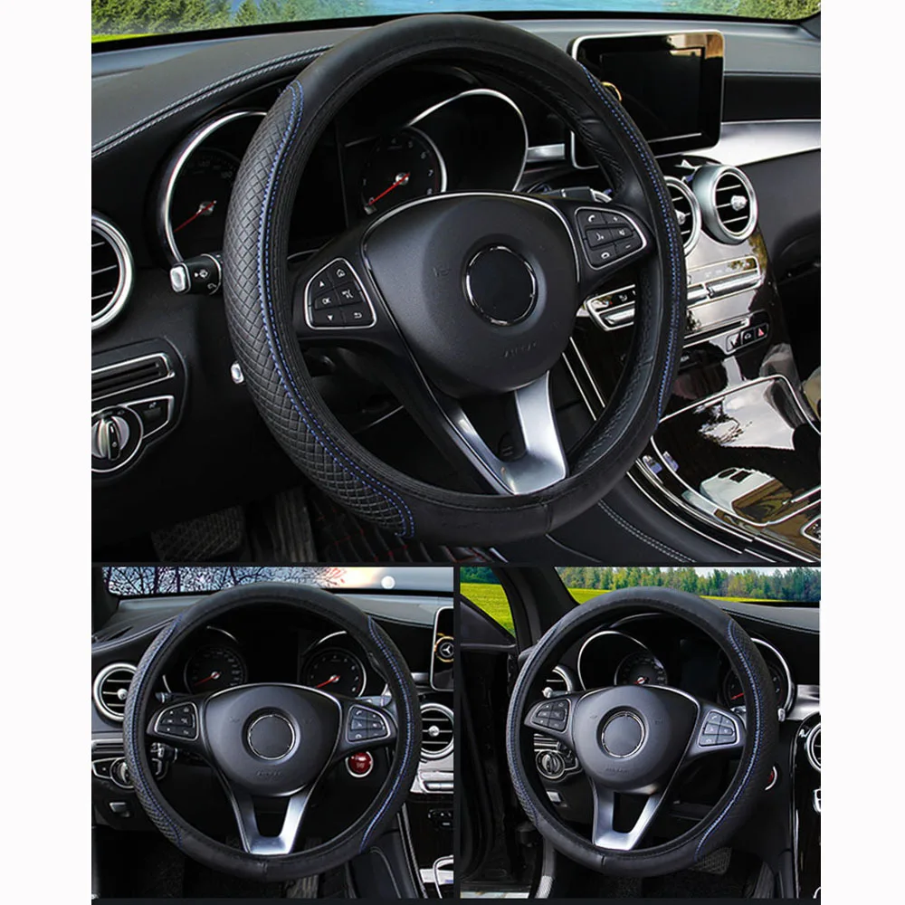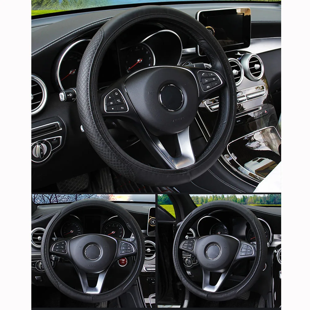 37-39cm Steering Wheel Cover Breathable Leather Anti Slip PU Leather Embossing Steering Covers Universal Car Accessories