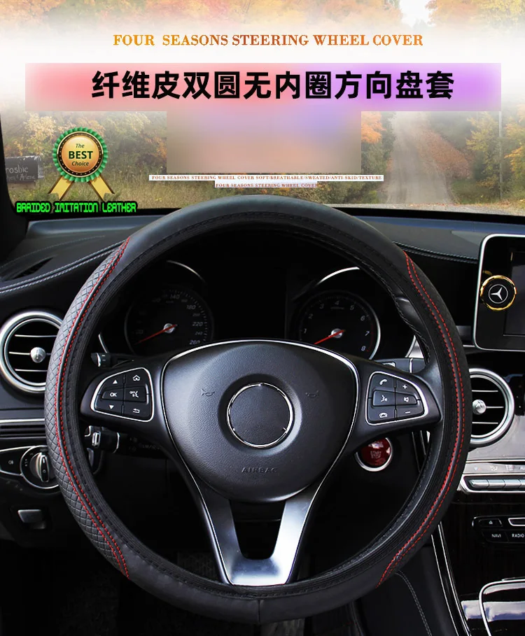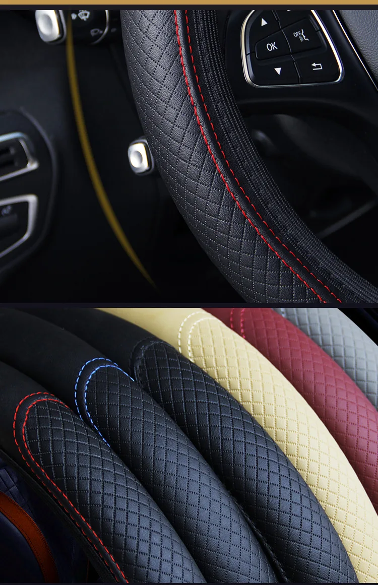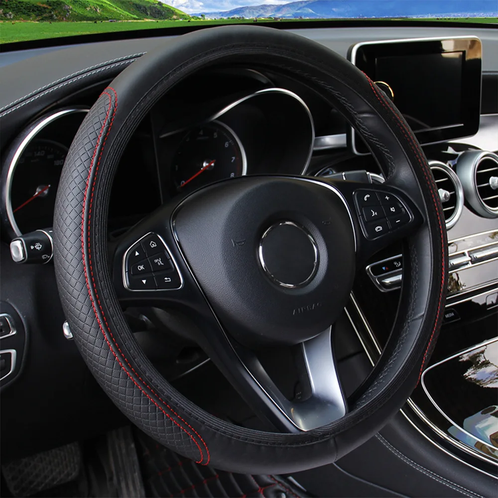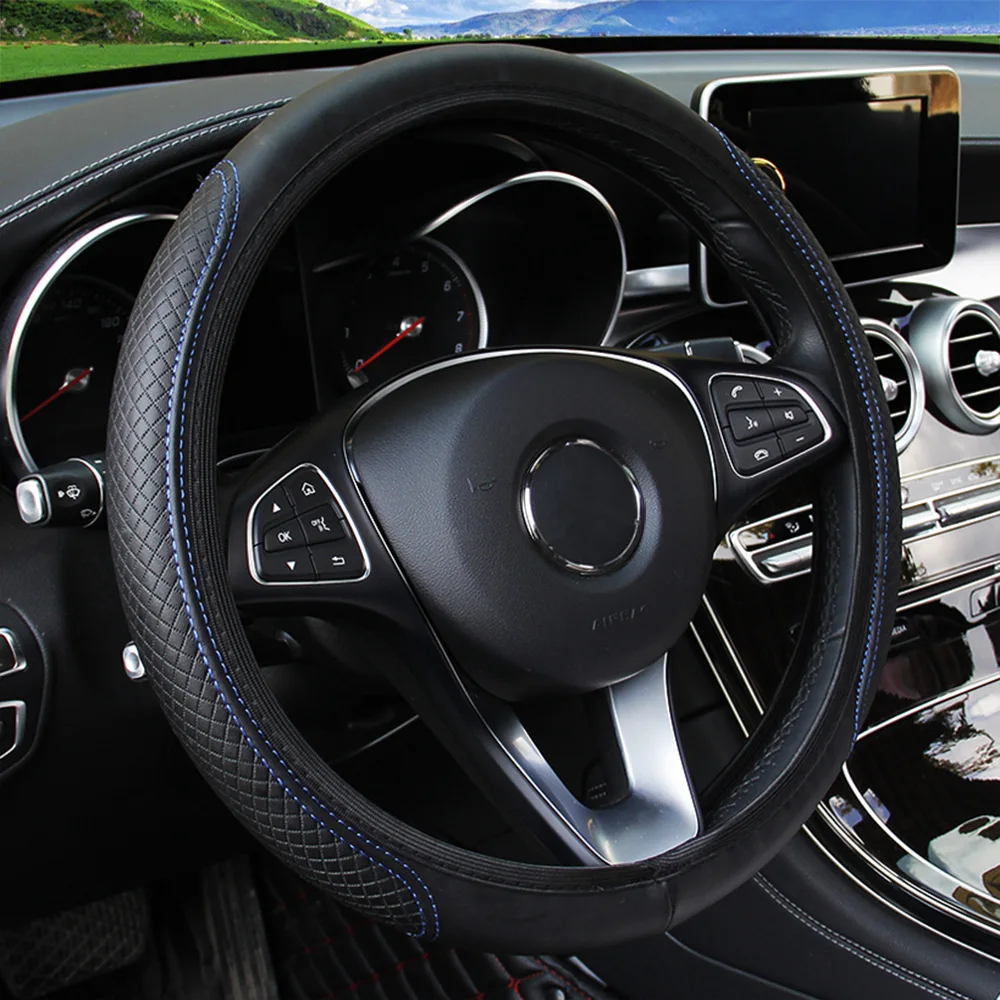 37-39cm Steering Wheel Cover Breathable Leather Anti Slip PU Leather Embossing Steering Covers Universal Car Accessories