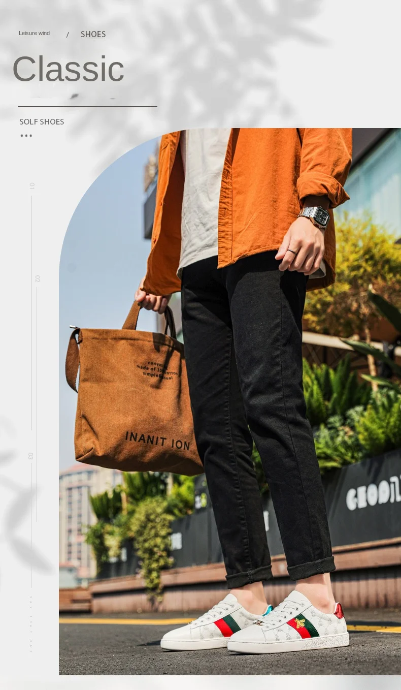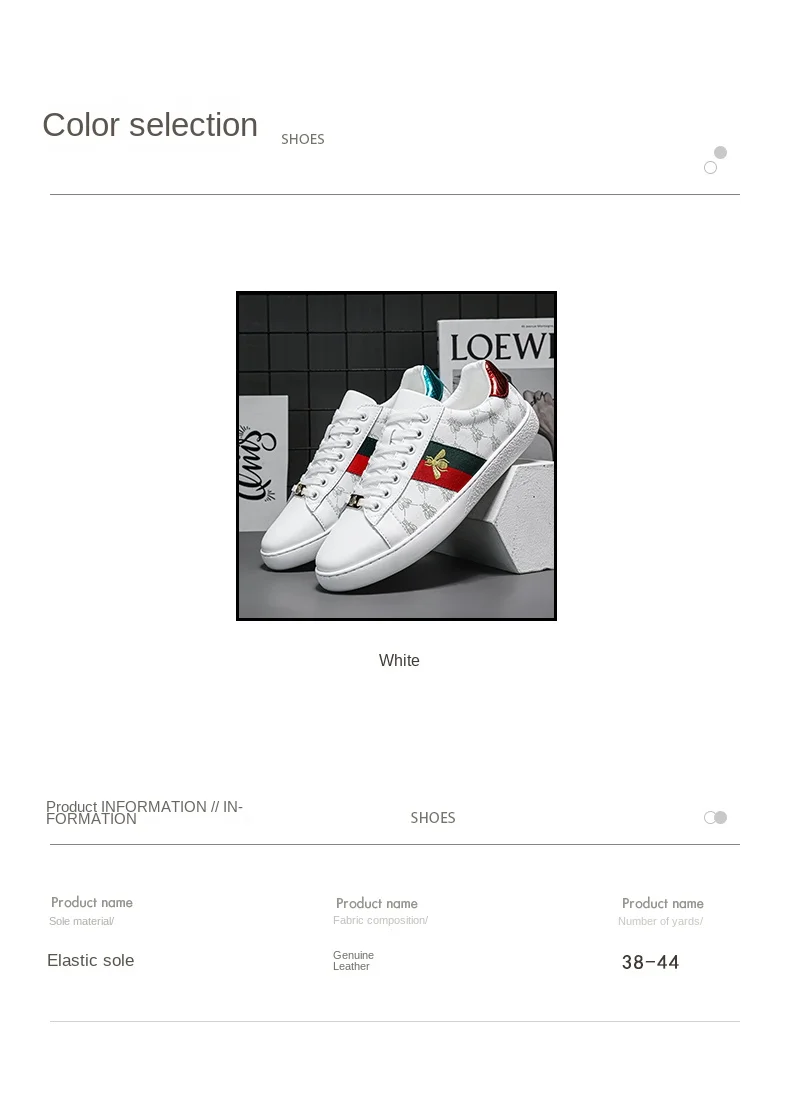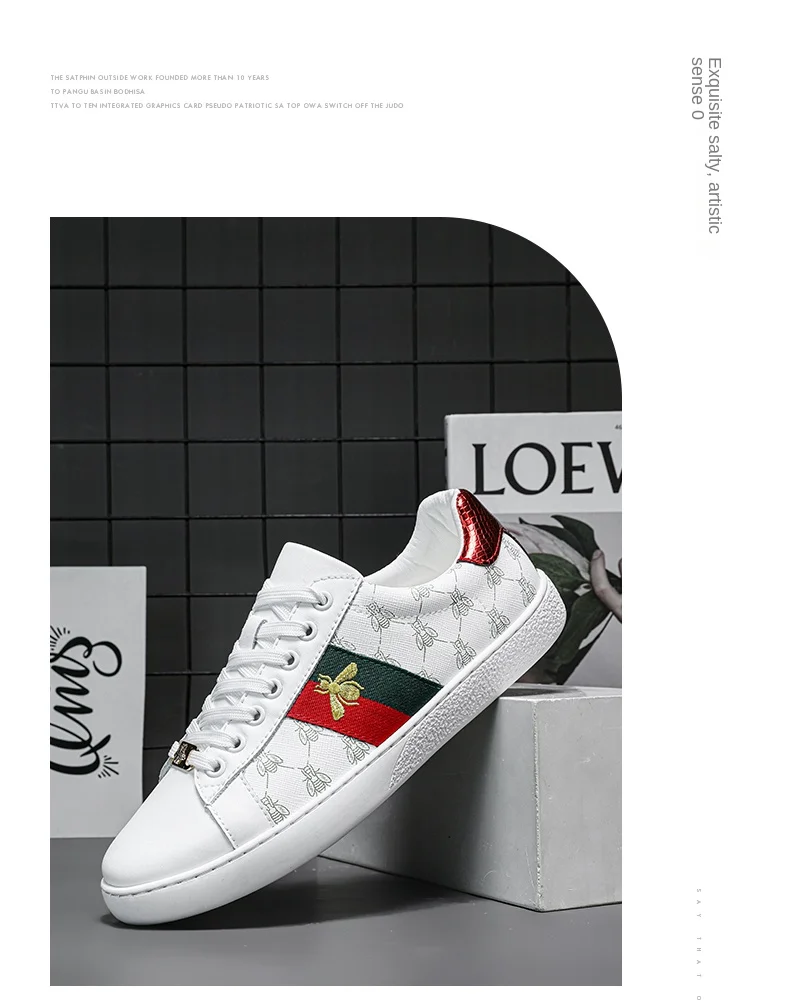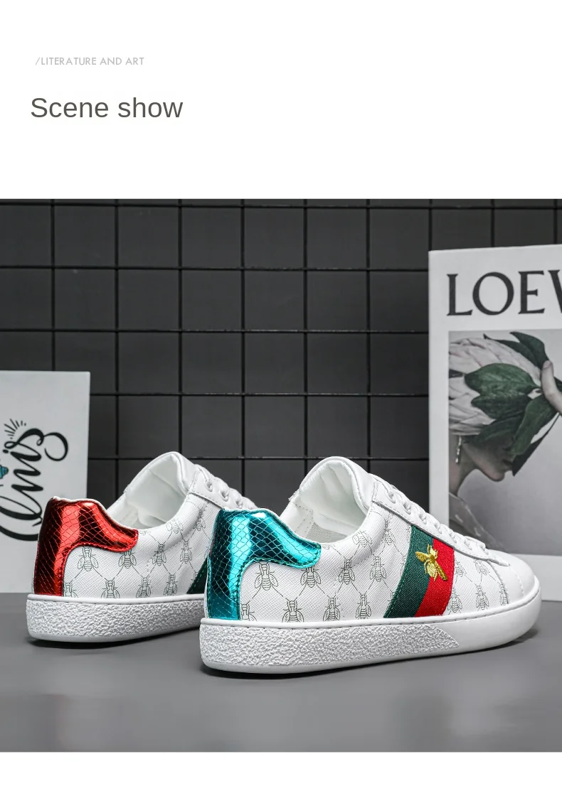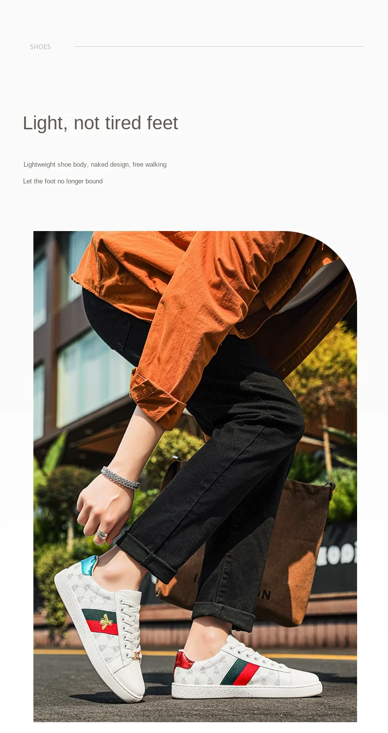 New Easiest for Match Genuine Leather White Shoes Men's Shoes Breathable Little Bee Embroidered Casual Sneakers Low-Top Sho