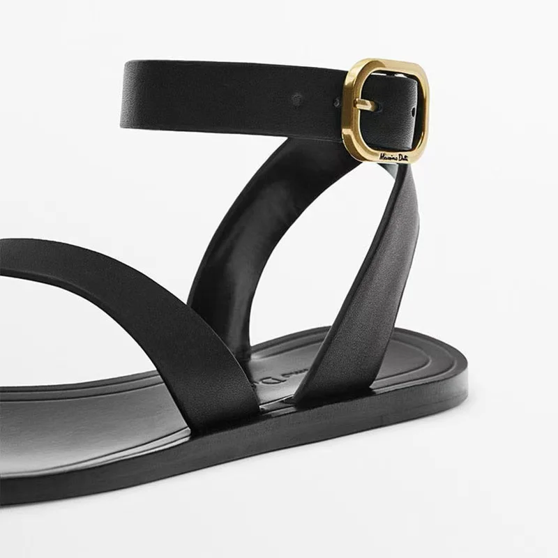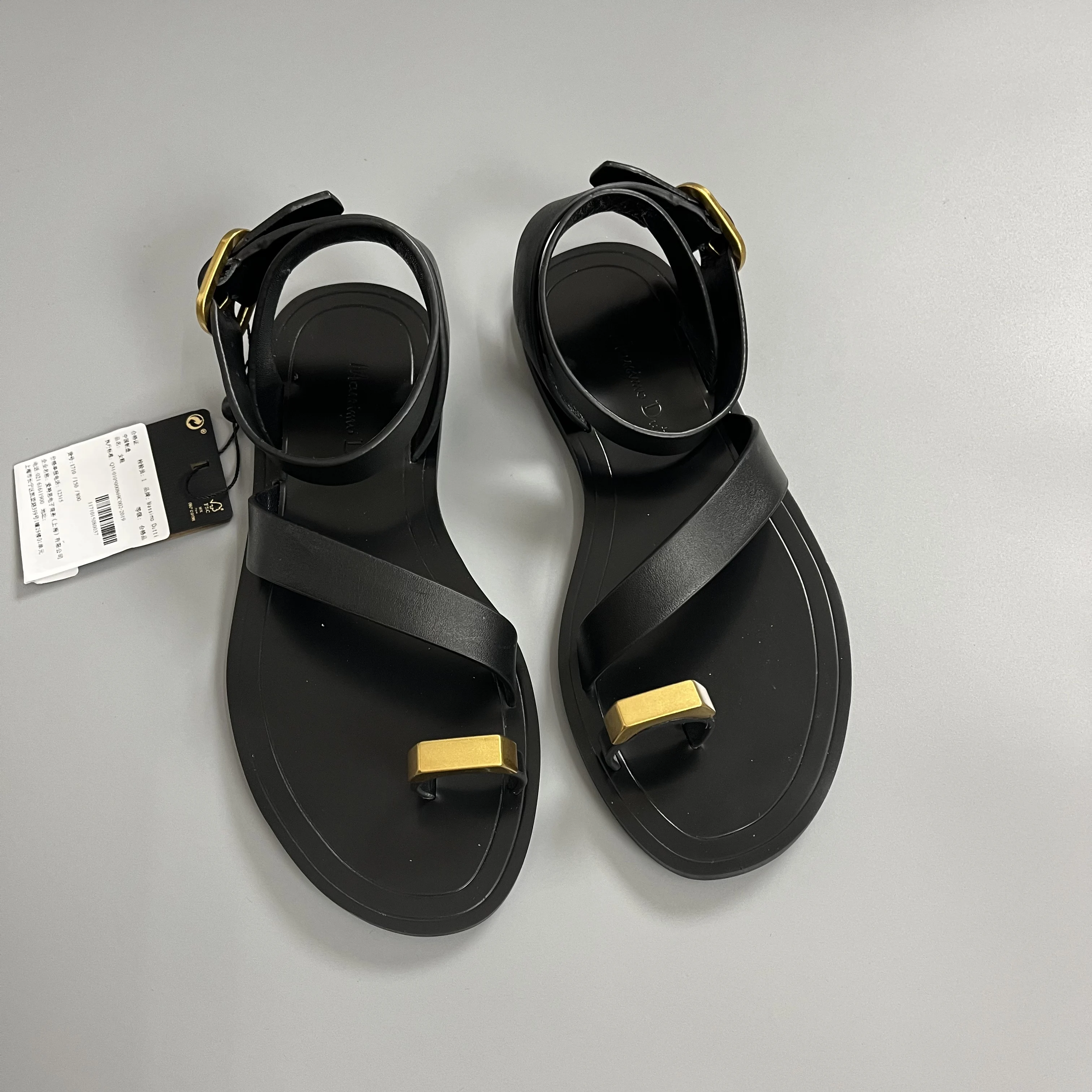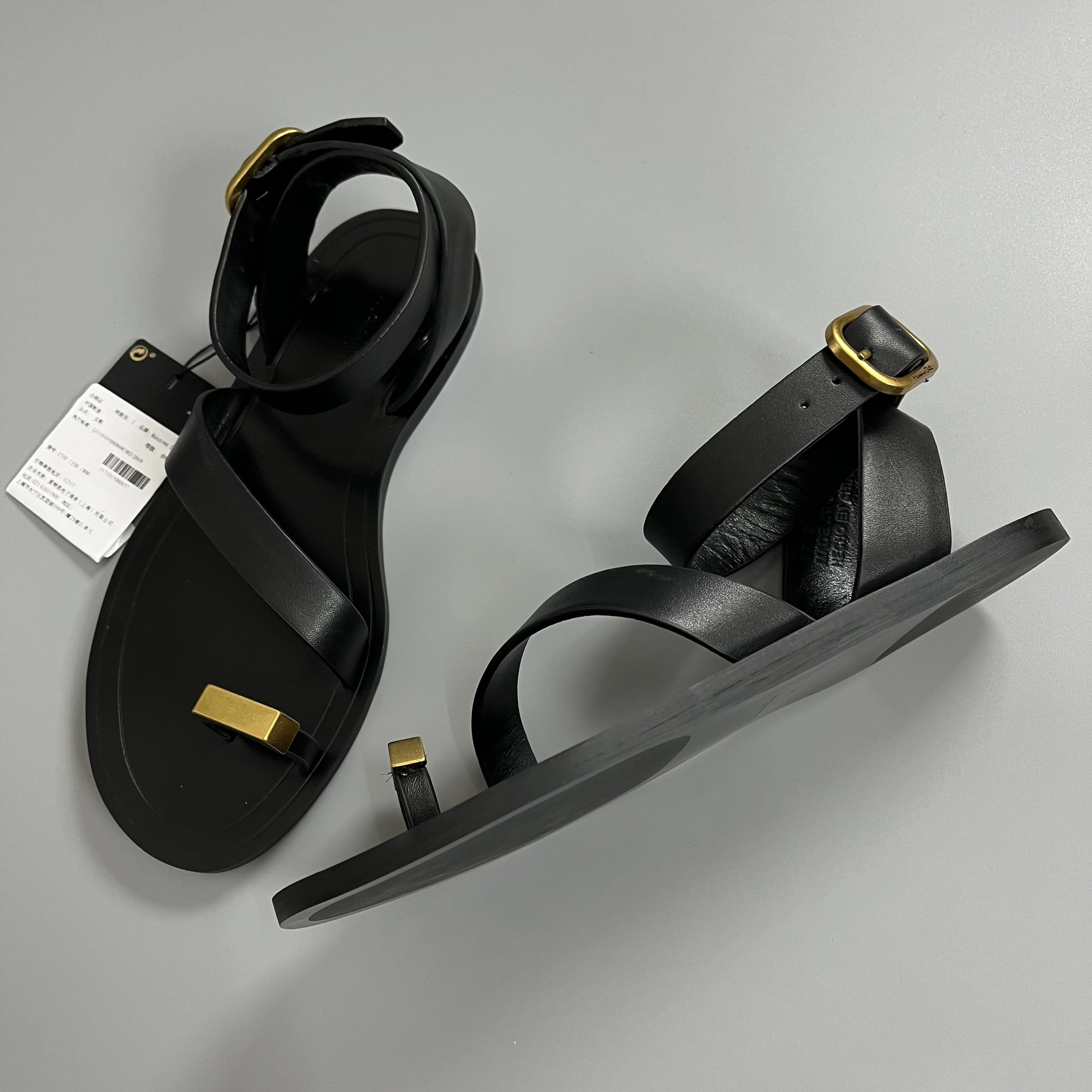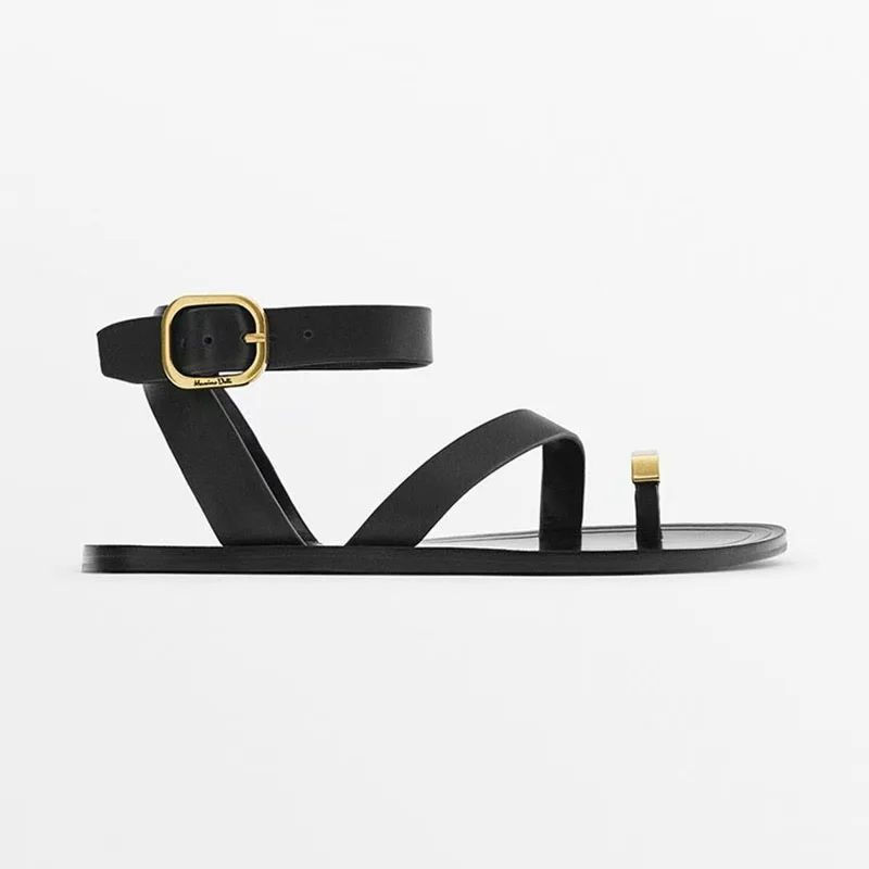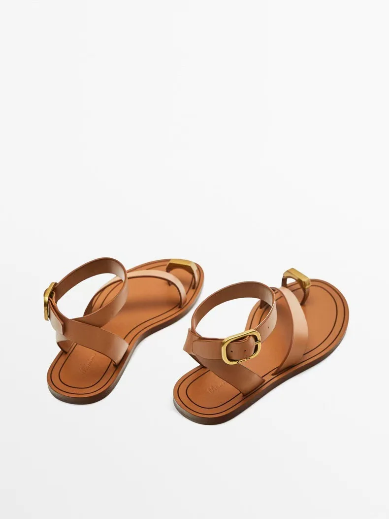 Women's Beach Sandals Genuine Leather Flat Clip Toe Metal Decoration Stylish Sandals Comfortable Versatile For Summer And Autumn
