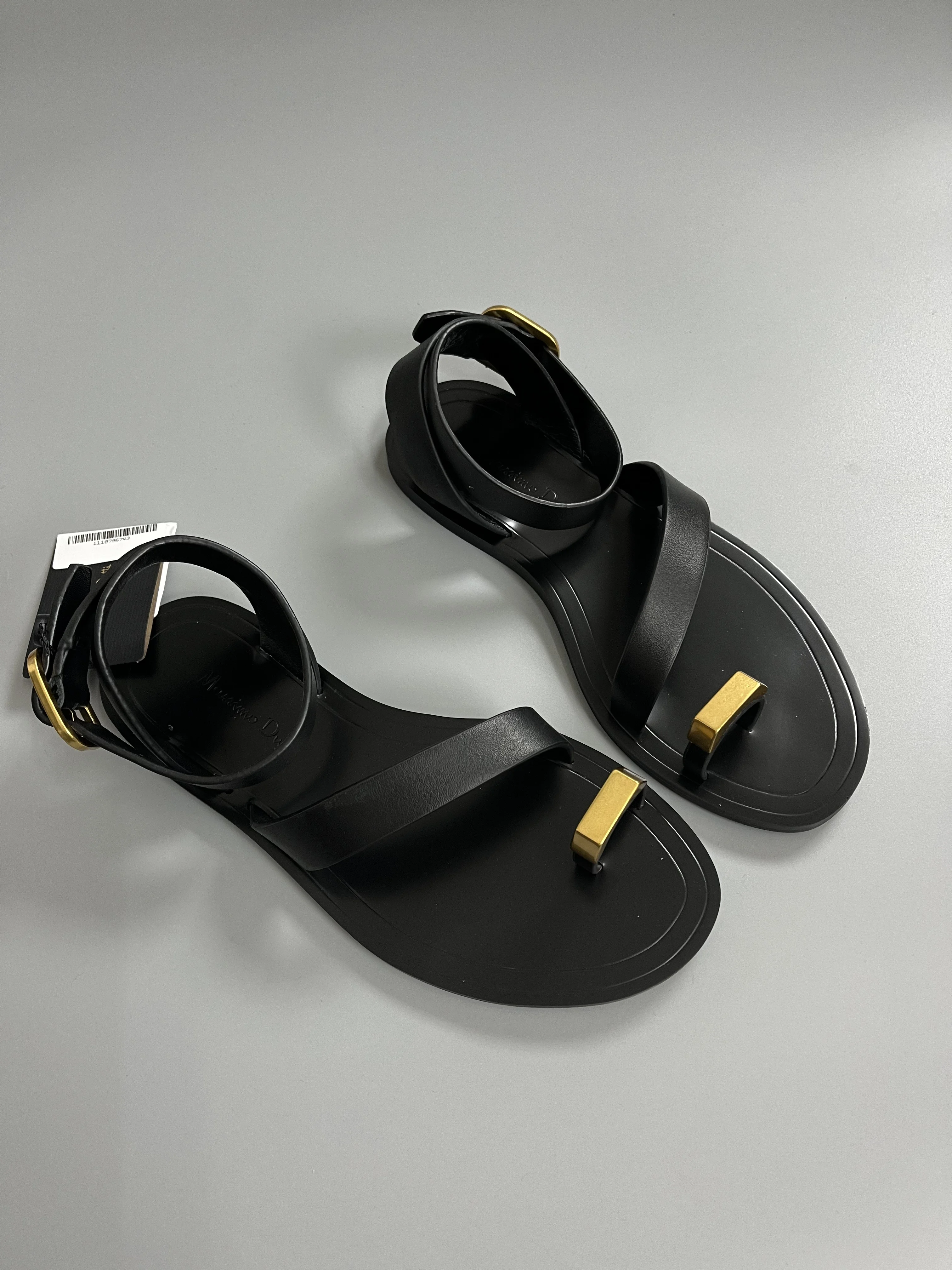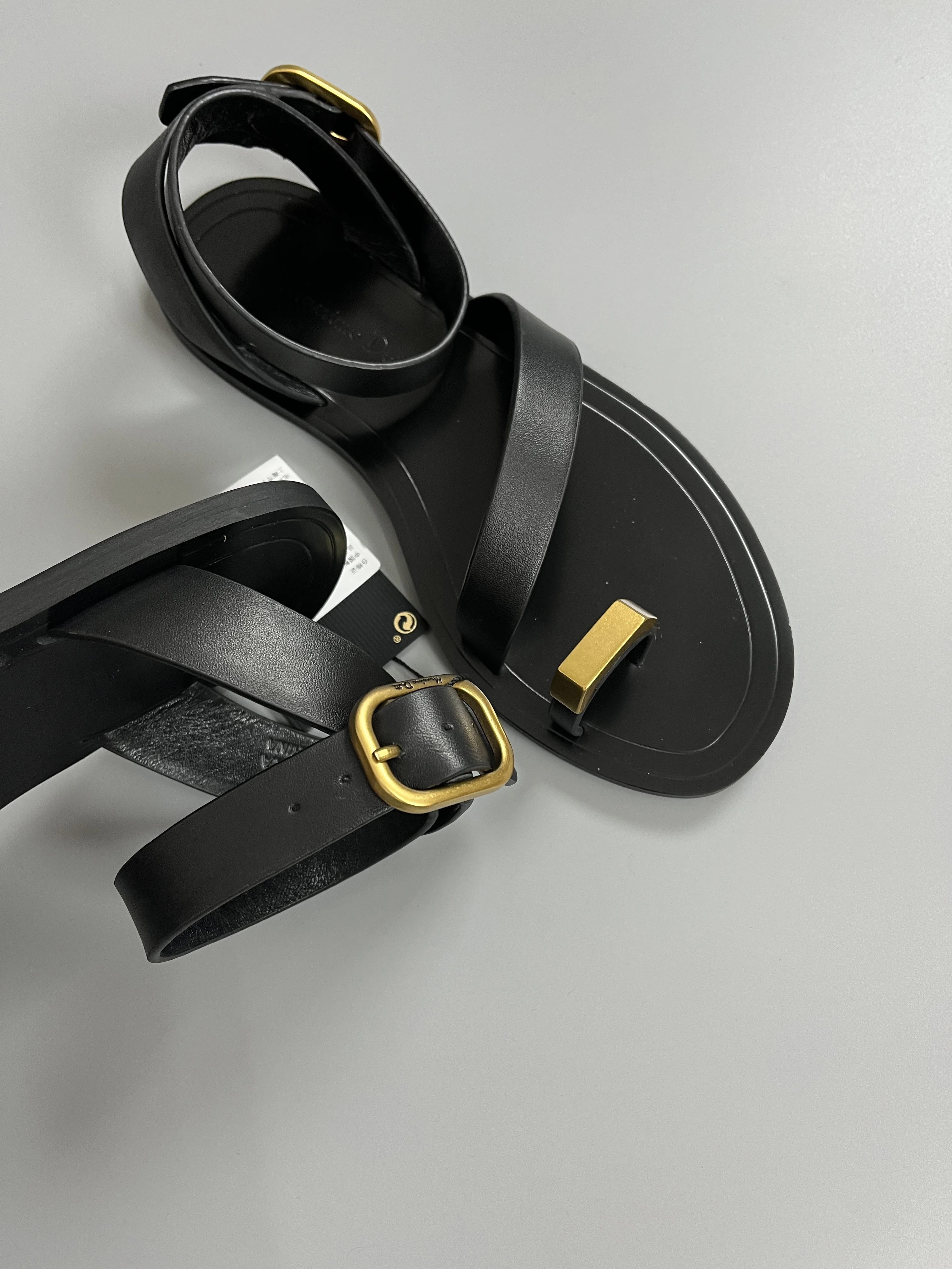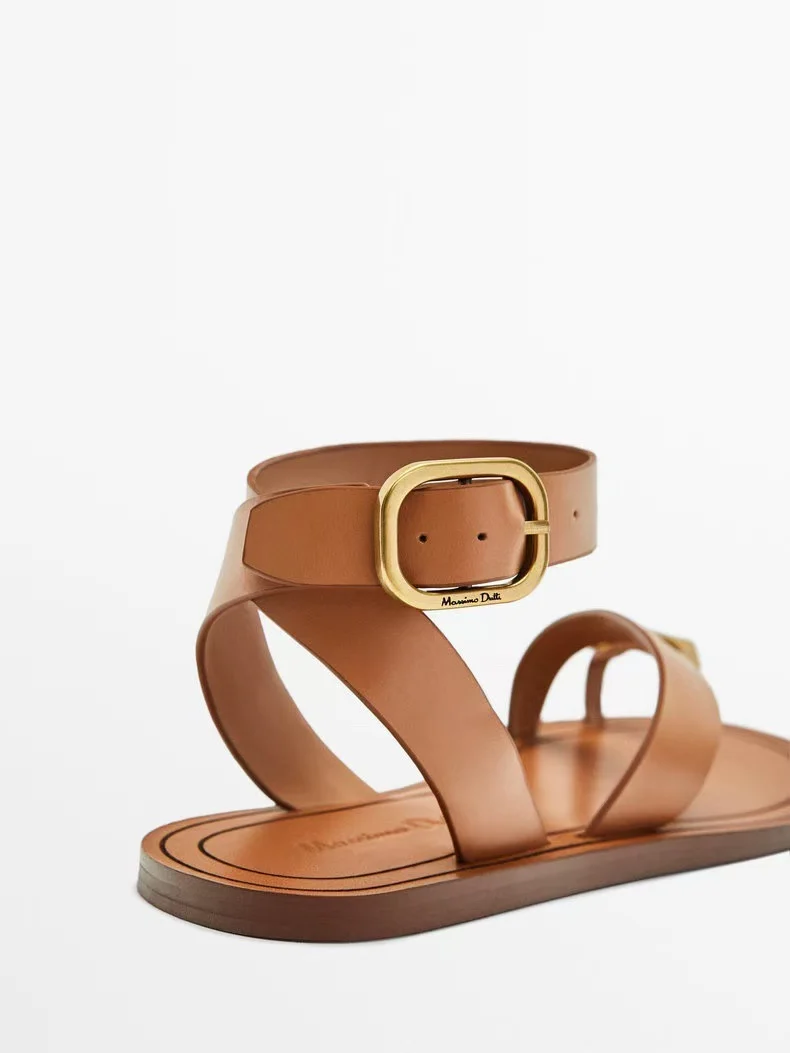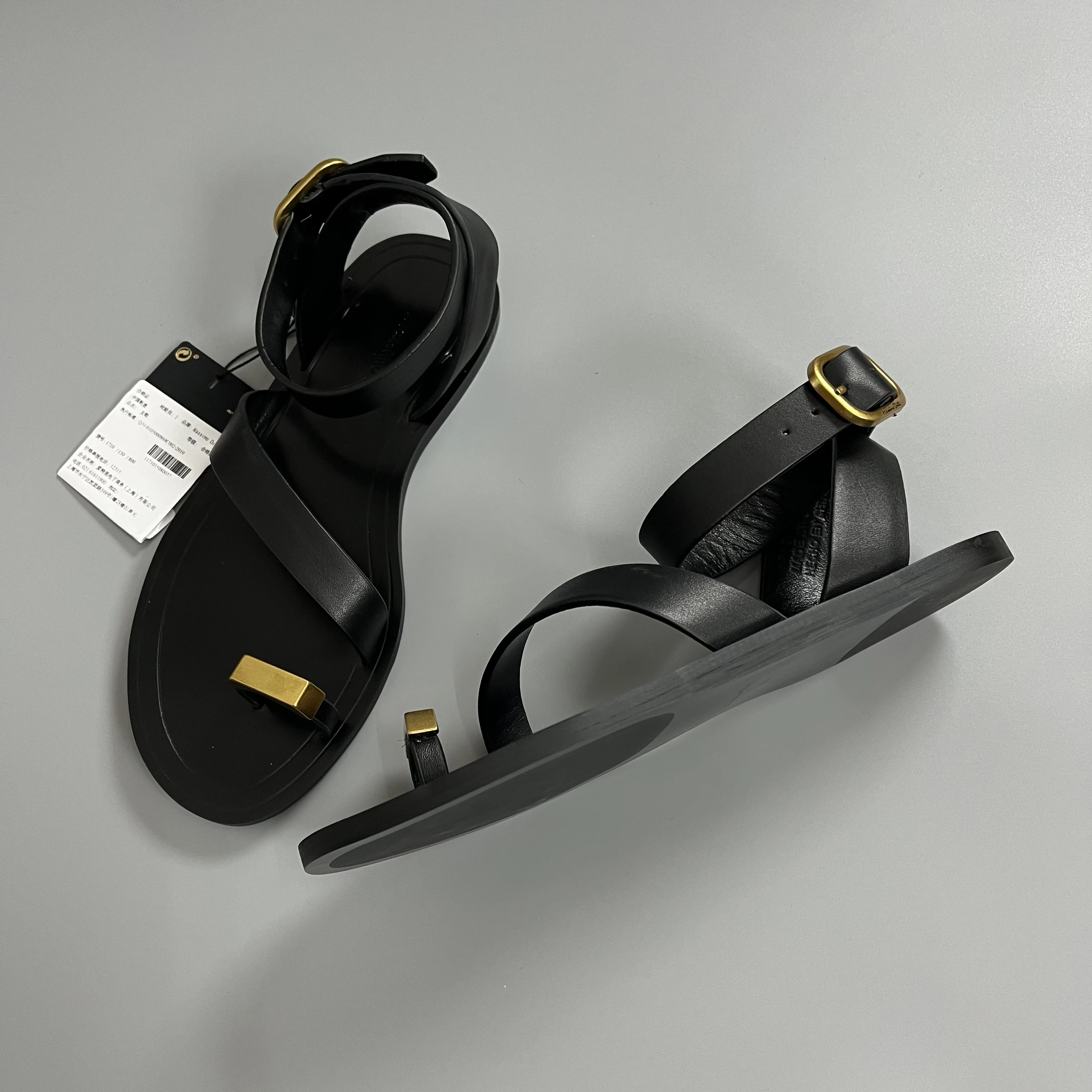 Women's Beach Sandals Genuine Leather Flat Clip Toe Metal Decoration Stylish Sandals Comfortable Versatile For Summer And Autumn