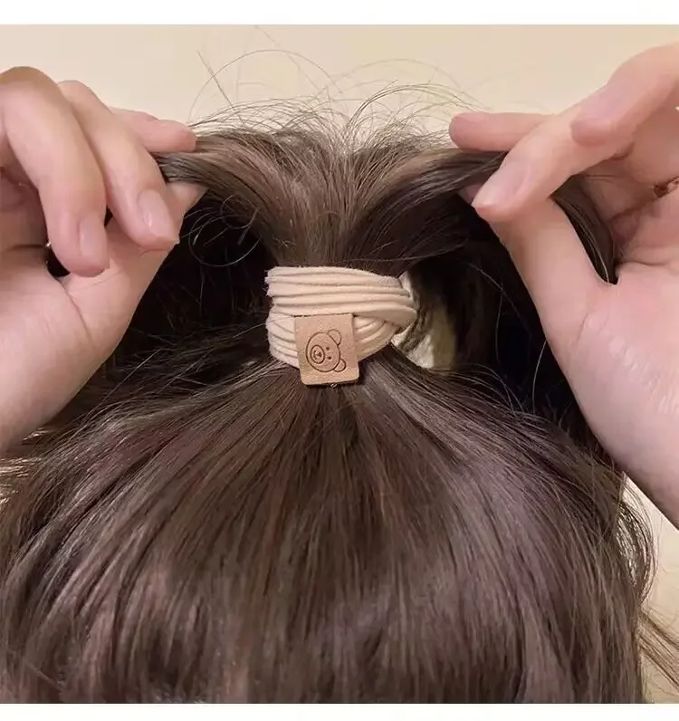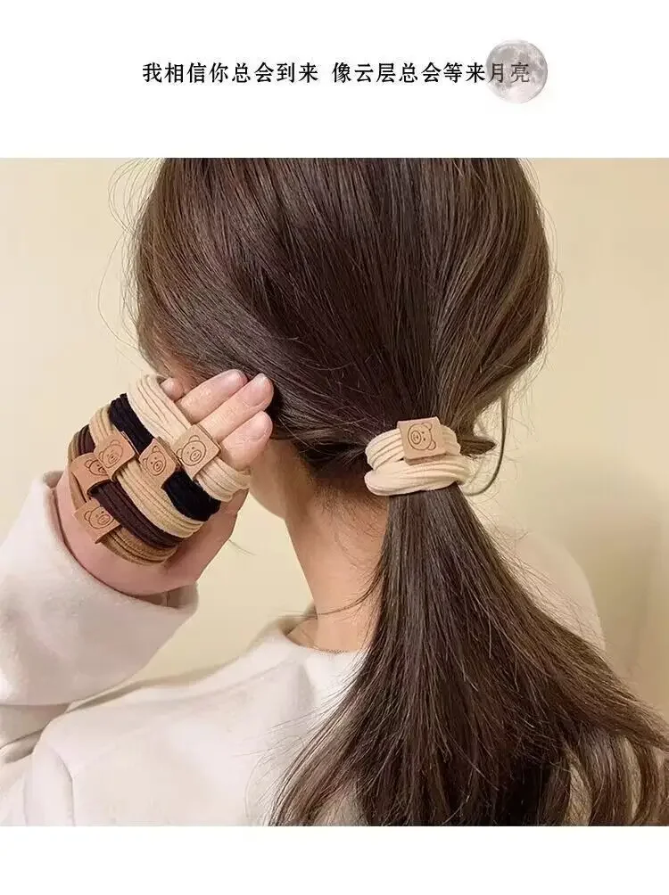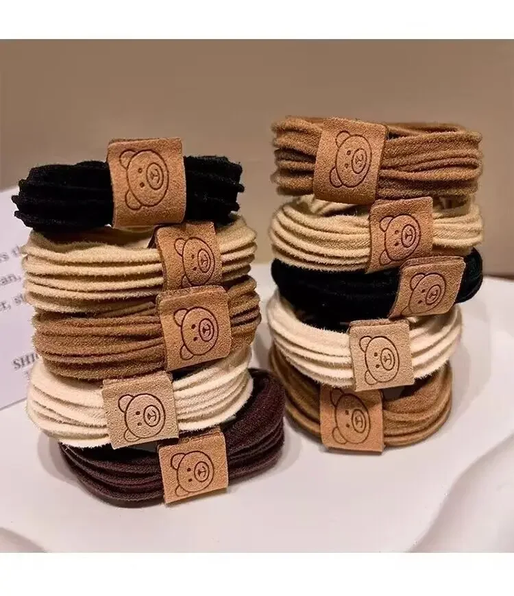 5/10pcs Bear Stripe Elastic Hair Bands – Thick Scrunchies for Women & Girls