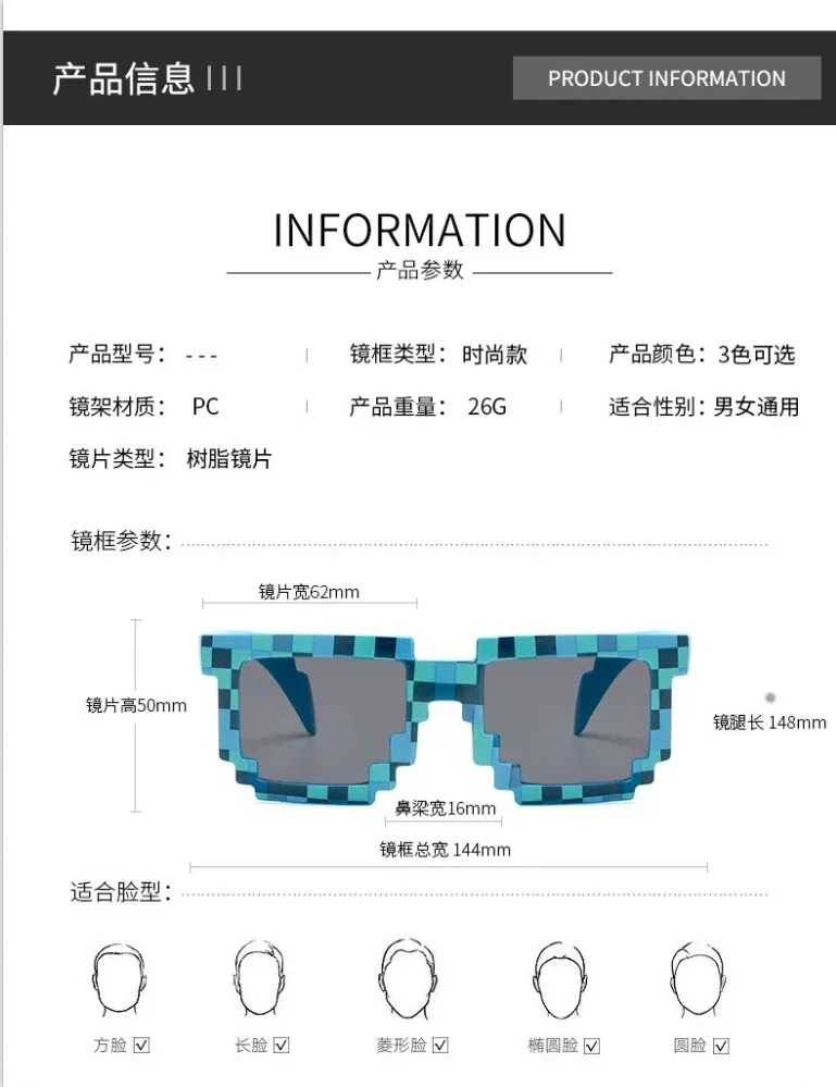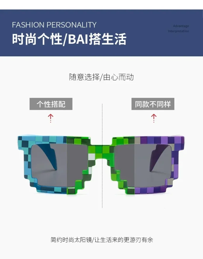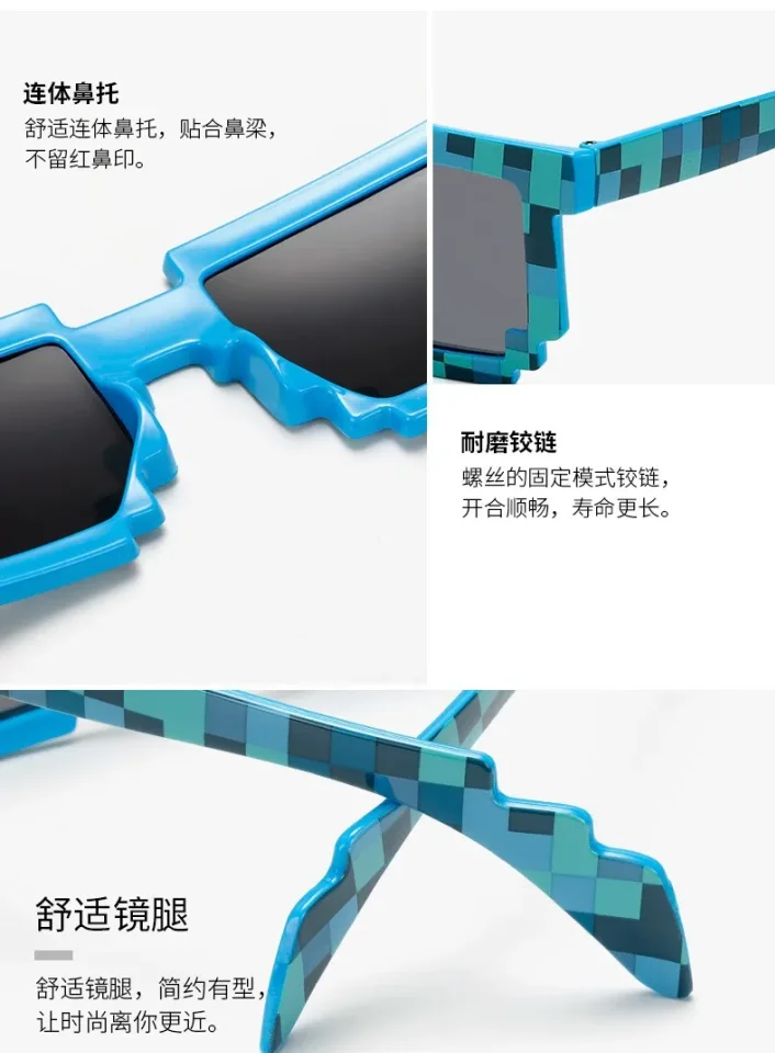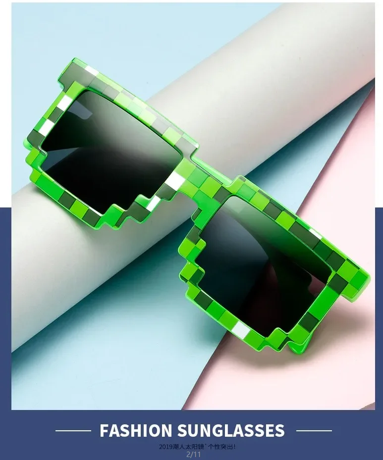 Pixel Mosaic Sunglasses – Funny Creeper Eyewear for Men, Women & Kids