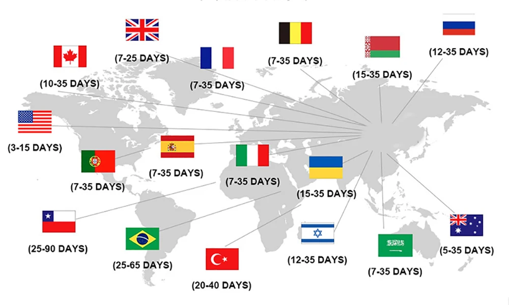 Standard shipping time is 7-35 days