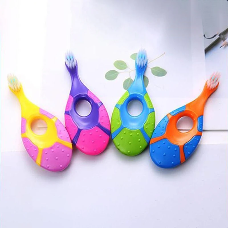 This baby training toothbrush has a short neck and practical grip ring to prevent swallowing, and the specially designed soft bristles help clean your toddler's first teeth and indicate the right amount of toothpaste.