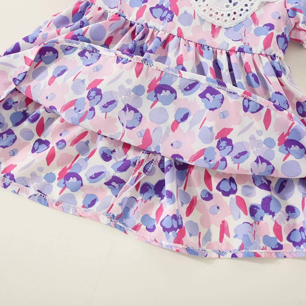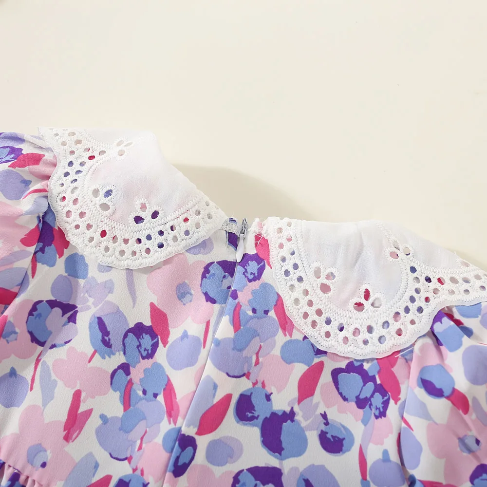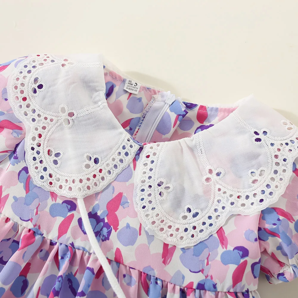 Baby Children's Summer New Doll Neck Lace Panel Printed Dress Children's Short Sleeve Full Print Princess Dress and Bag