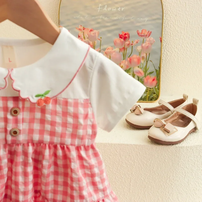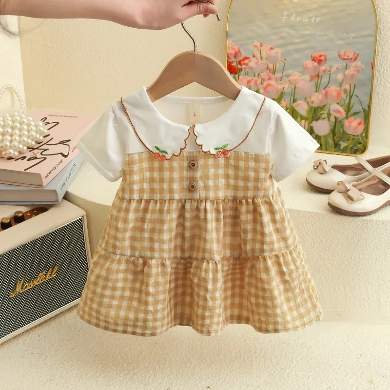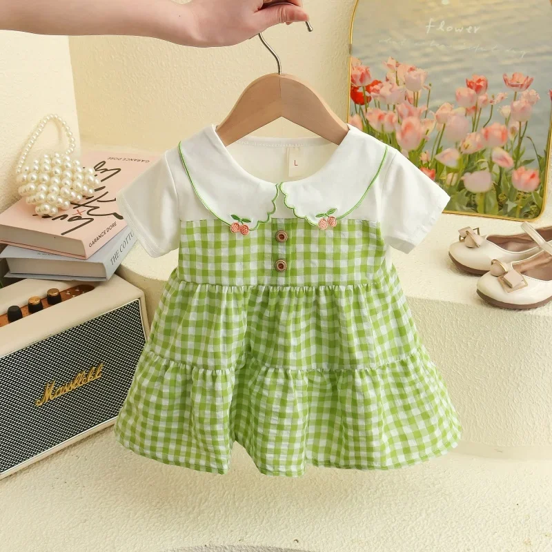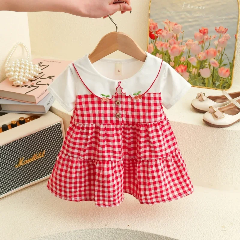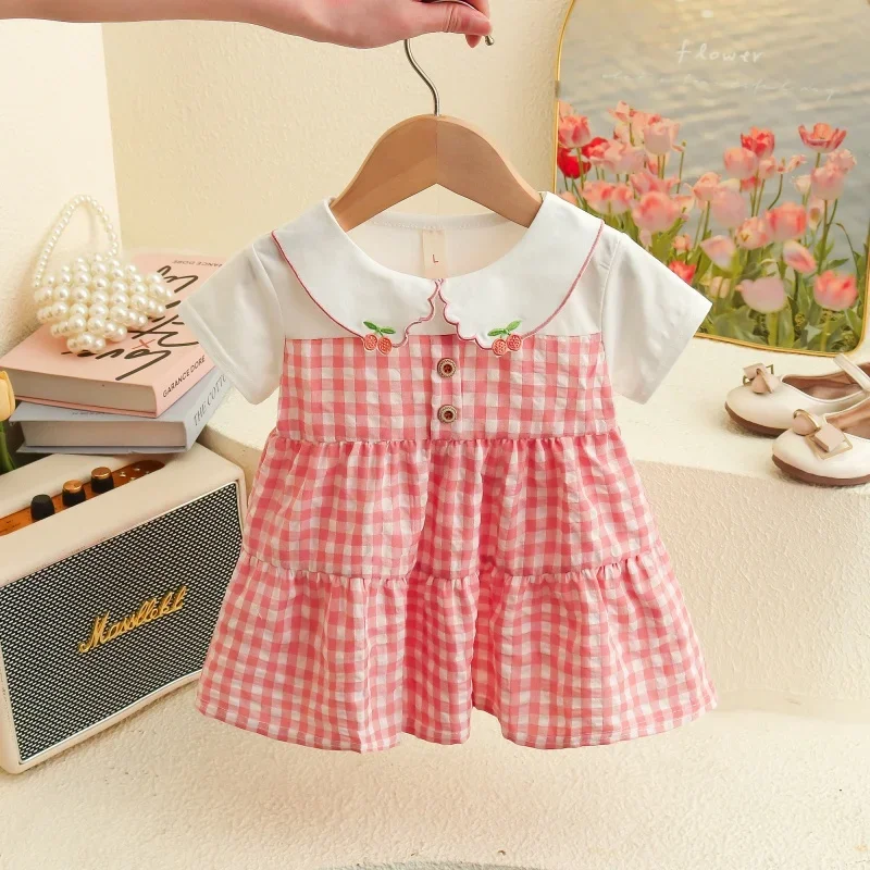Baby Dresses Summer Plaid Short Sleeve Girls Dresses Cute Casual Baby Girl Clothes