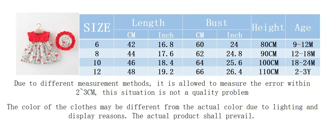 New Summer Baby Girl Floral Dress Girl Sleeveless Pure Cotton Newborn Birthday Dress Comes with Sun Hat