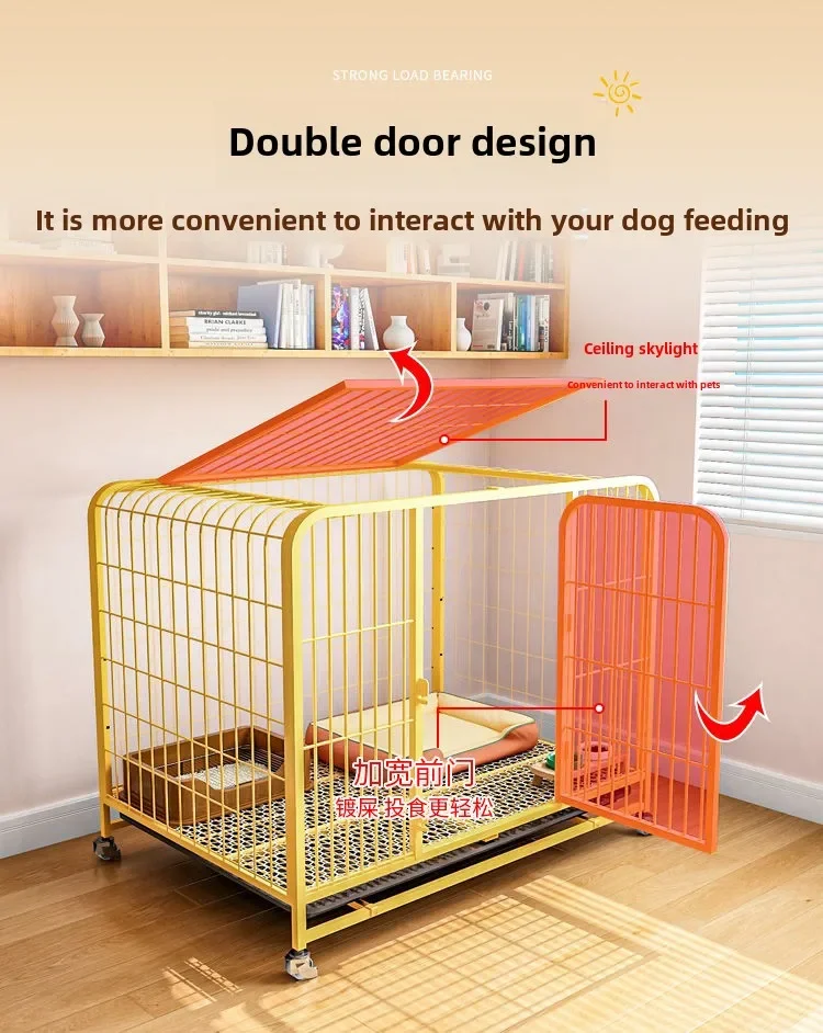 Dog Cage Large Medium Dog Indoor with Toilet Separation Bold Pet Cage Golden Retriever Labrador Household Dog Playpen House