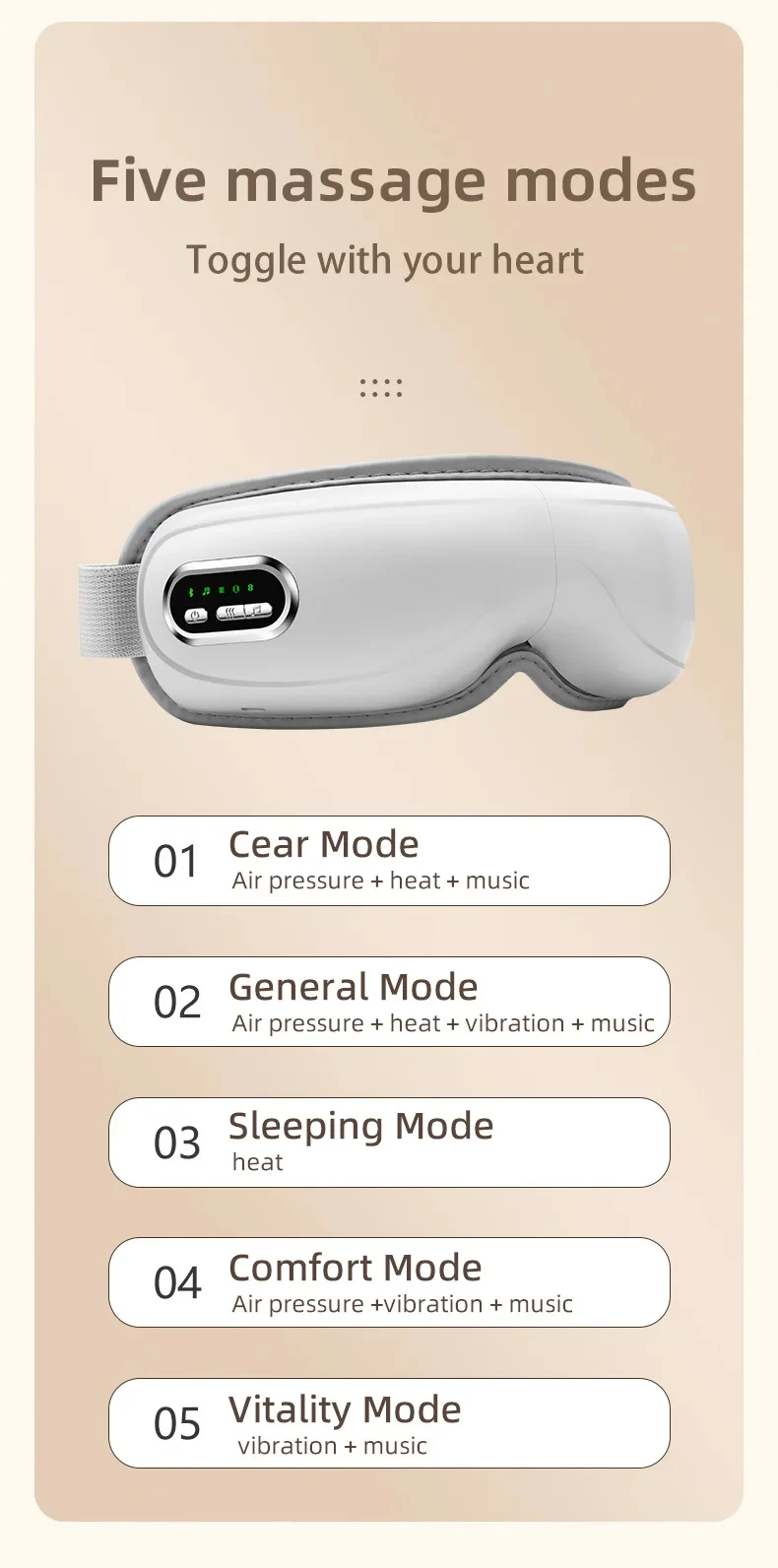 2025 Eye Massager Mask – Heated, Wireless & Music Enabled with 5 Modes.
