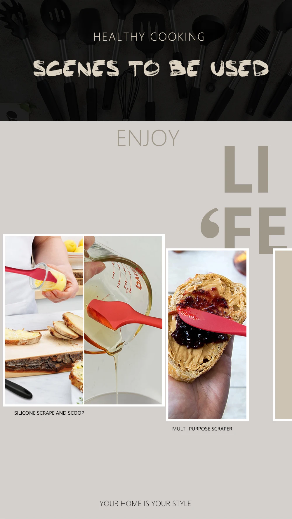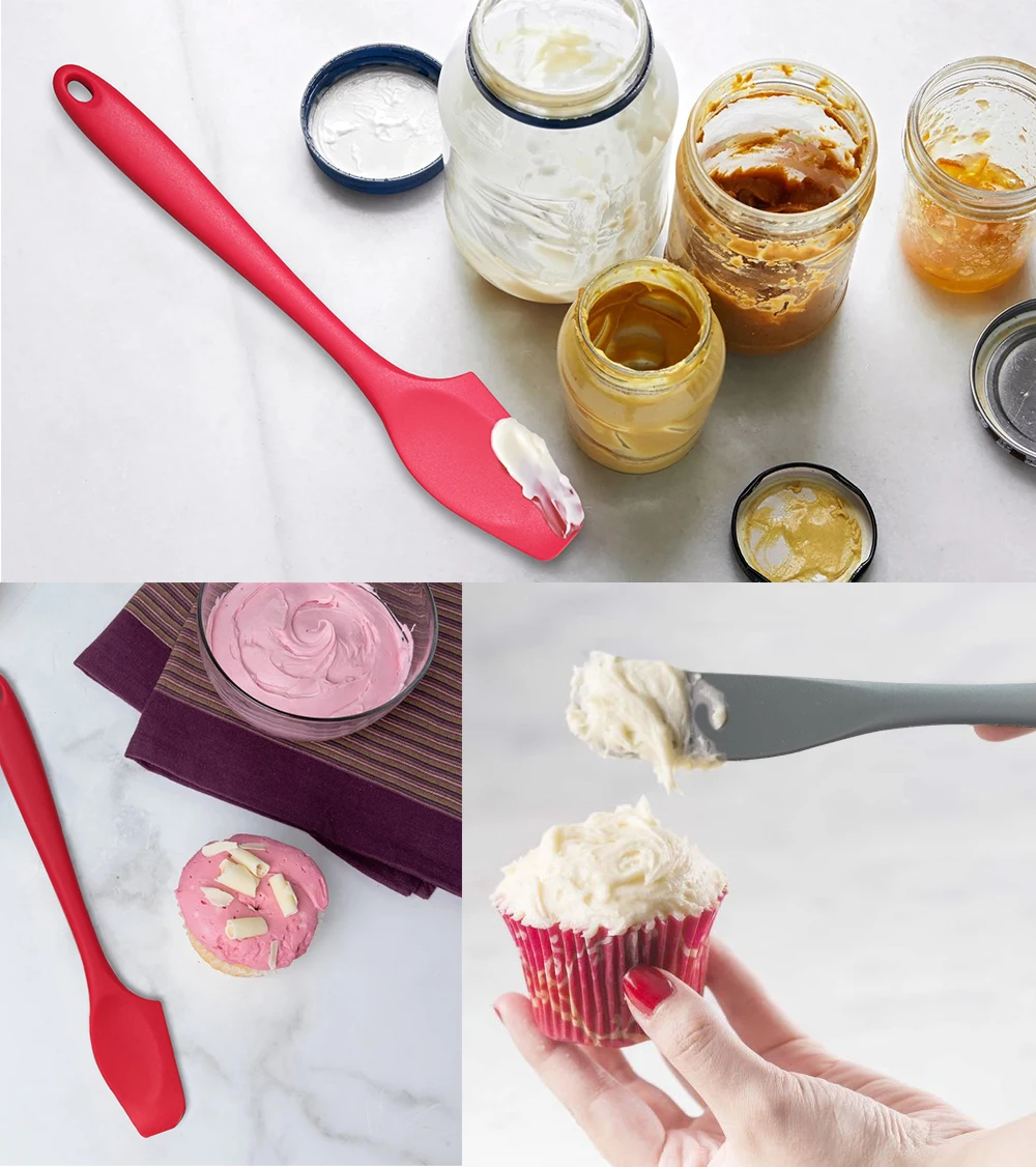 Essential kitchen accessory:One of our favorite multi-purpose kitchen tools, now available in a smaller size. Perfect for scooping up hard to handle jams or jellies and spreading everything from butter to buttercream. Flexible silicone design scrapes hard-to-reach places, so you can get the last of the peanut butter out of the jar. keeps hands clean during use.