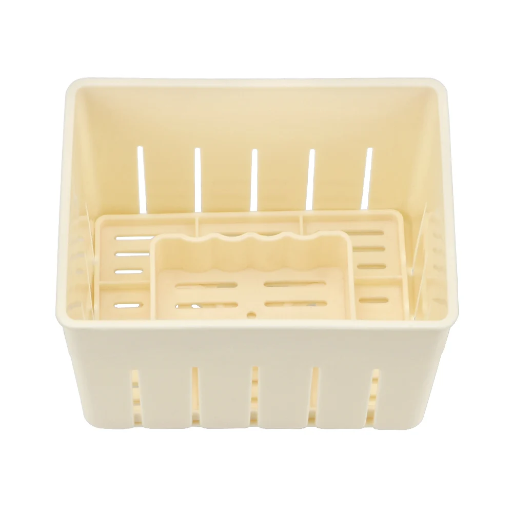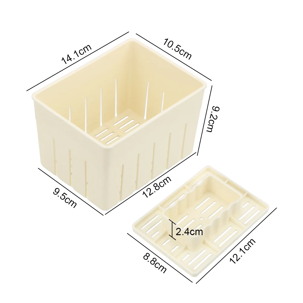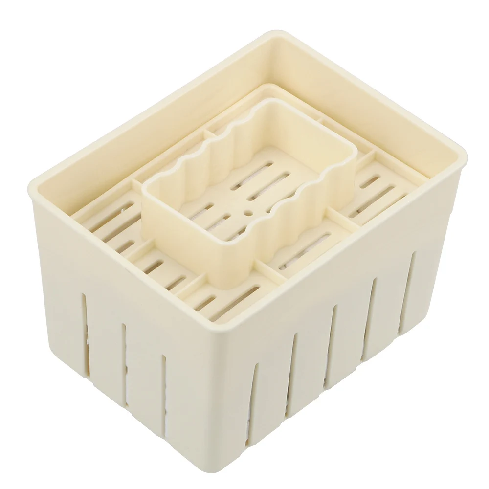 4. Take out the tofu mold, put the filter cloth in the mold and arrange it, pour the prepared tofu brain into the mold, close the lid of the mold, press it with your hand, put a heavy object on the lid and press it for 10 minutes, then open the lid, The tofu is ready.