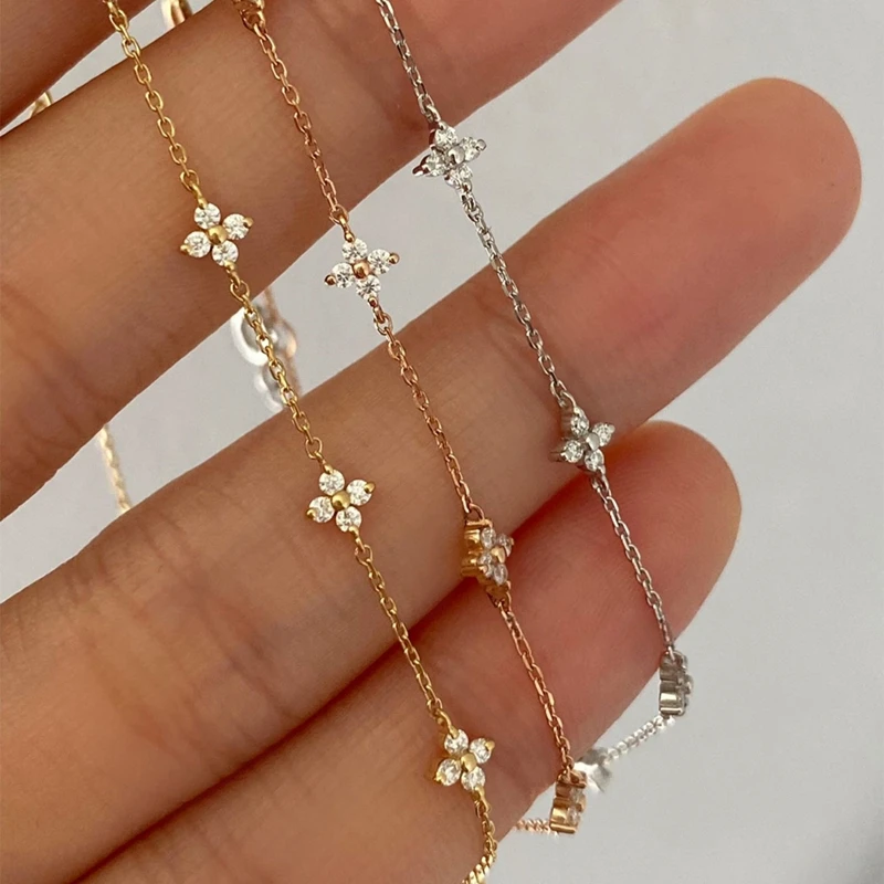 925 Sterling Silver Four Leaf Flower 18k Gold Zircon Bracelet For Women Temperament Exquisite Jewelry Wedding Gift Accessories