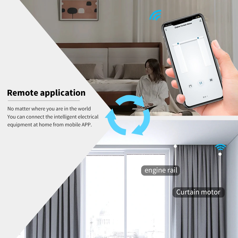 2.App Control -Via controller or mobile APP.The operation of curtain motor equipment can be realized.