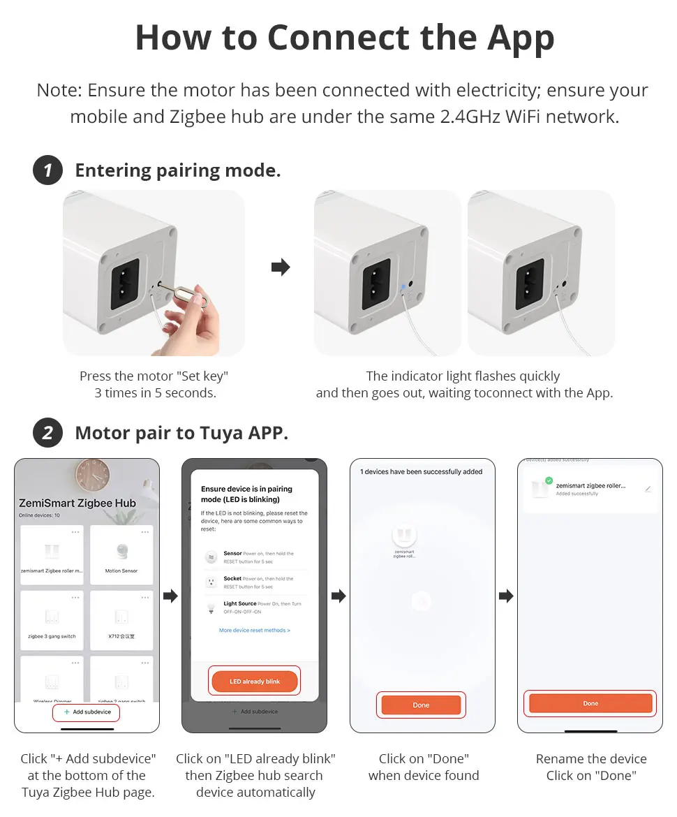 - Tuya Zigbee hub is necessary if you would like to control the curtain via app or voice control.