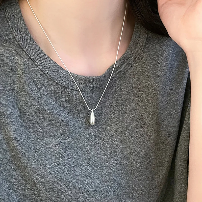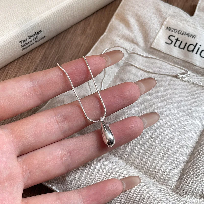 925 Sterling Silver Water Drop Shape Woman Necklace Personality Charm Geometric Shape Pendant Birthday Gift Exquisite Jewelry