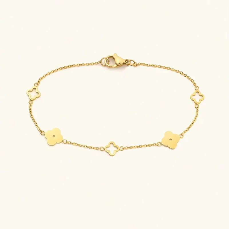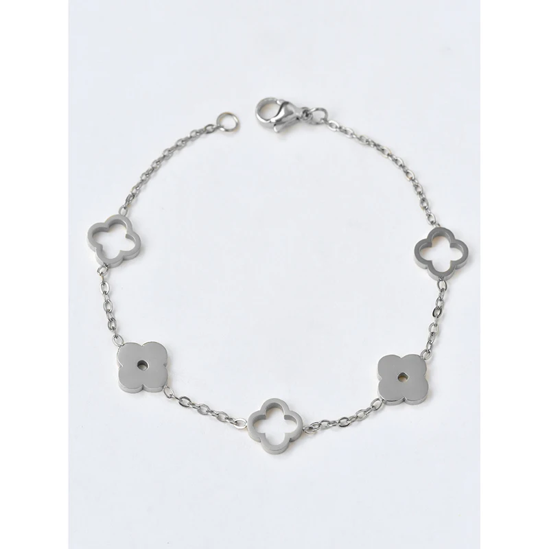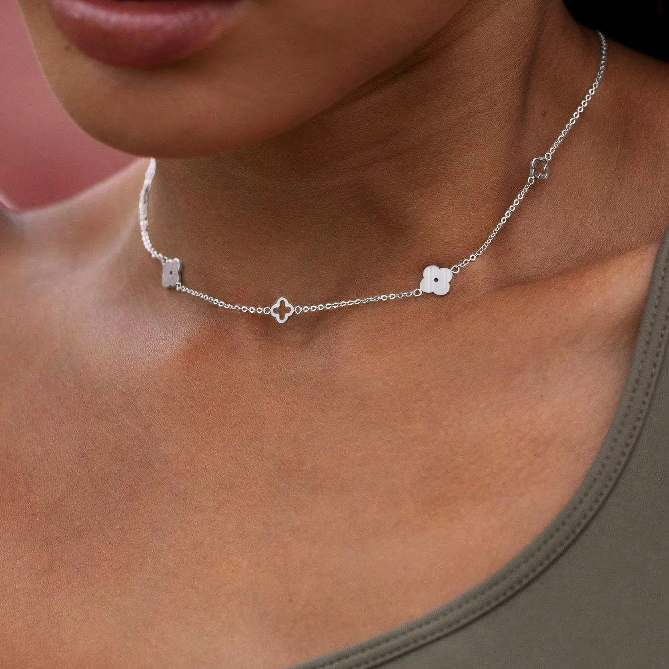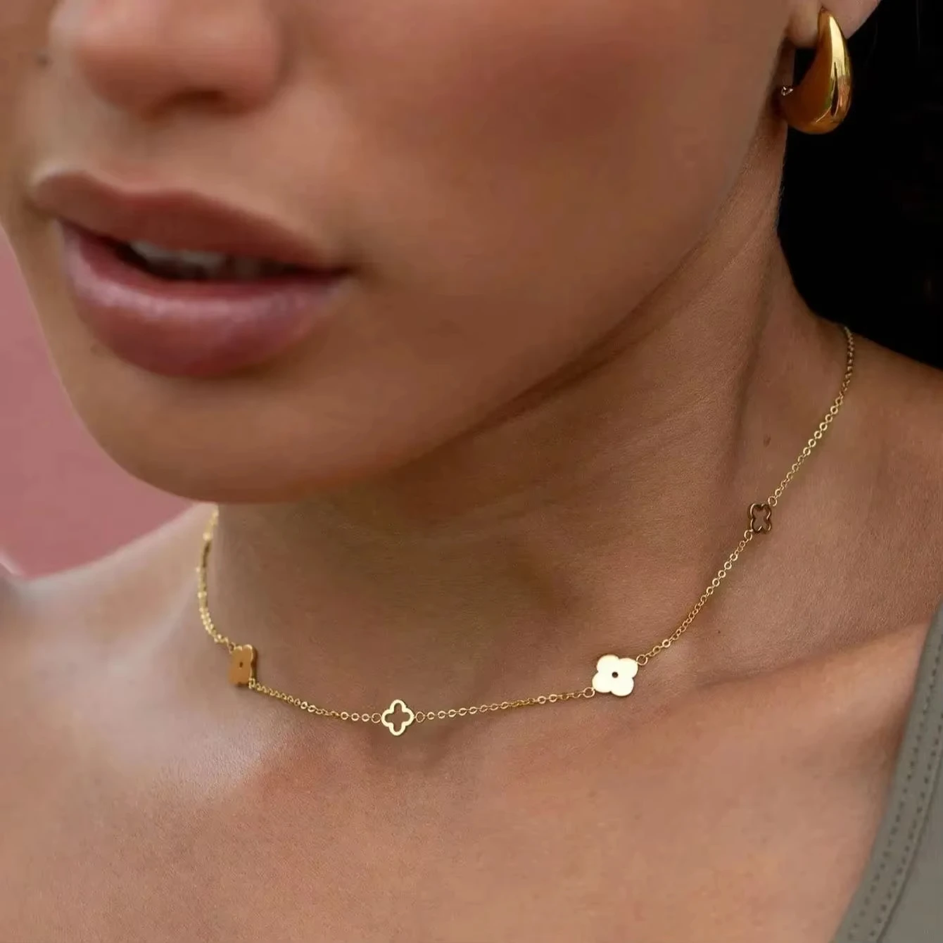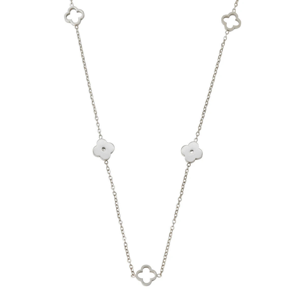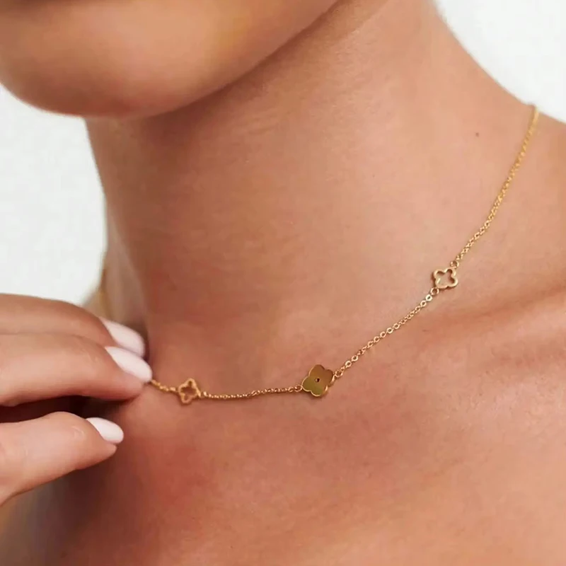 Korean Style Simple Stainless Steel Four-Leaf Clover Plum Blossom Interlocking Pendant Necklace For Daily Wear Wedding Gifts