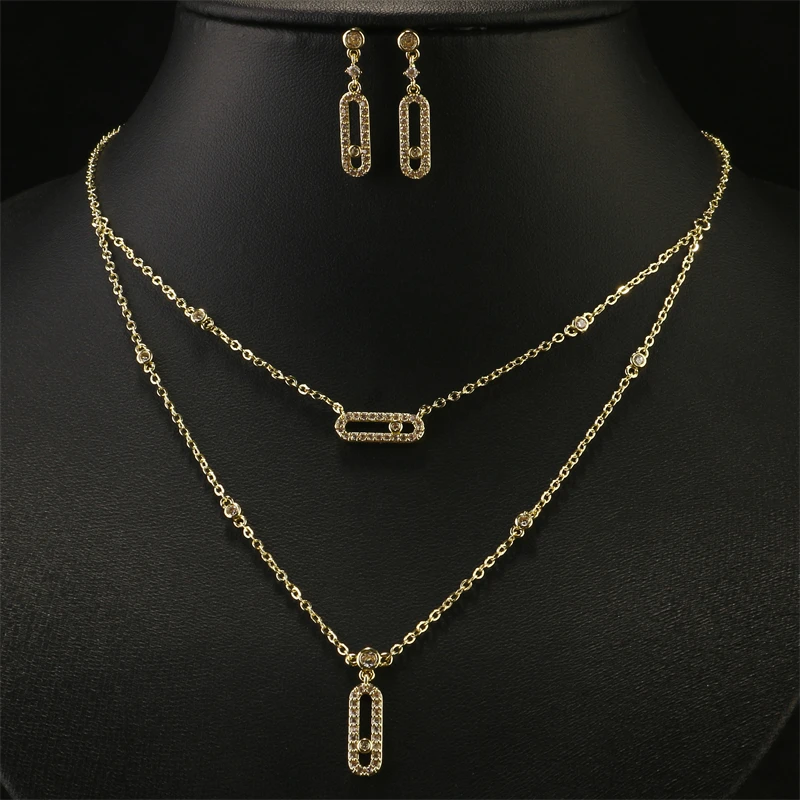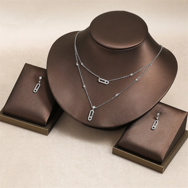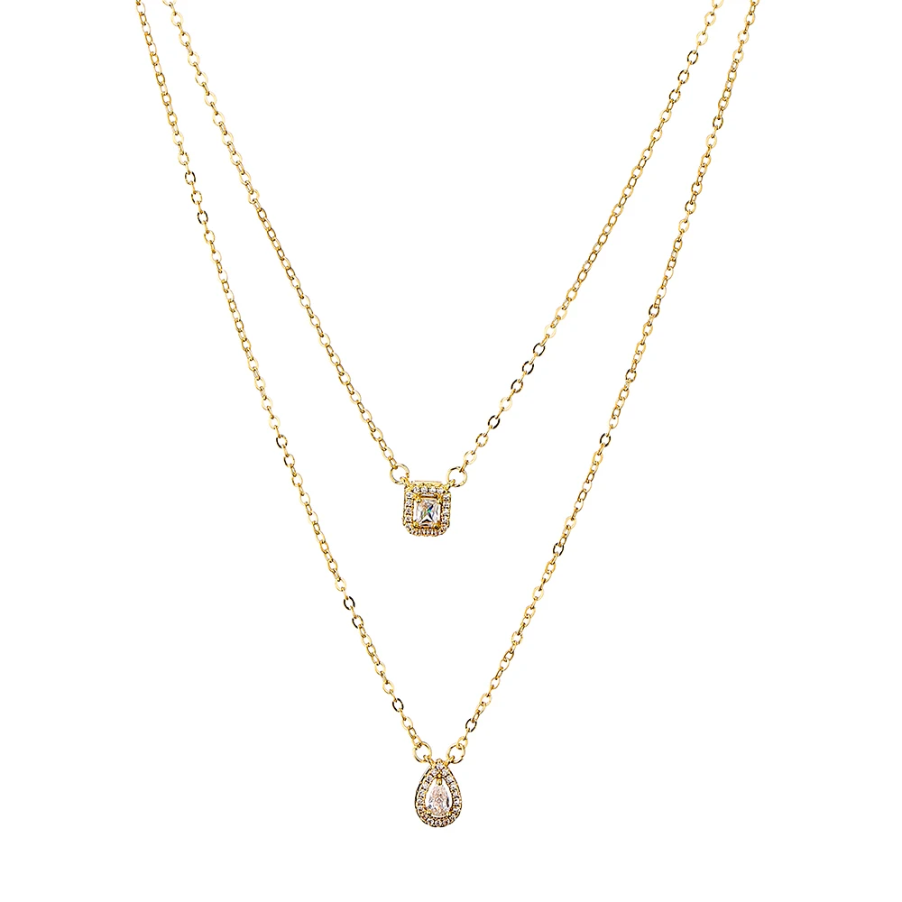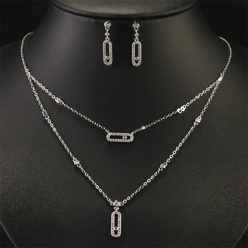 Luxury Silver-color AAA Zircon Choker Two-Layers Necklace Simple Shiny Pendants For Women Fine Jewelry