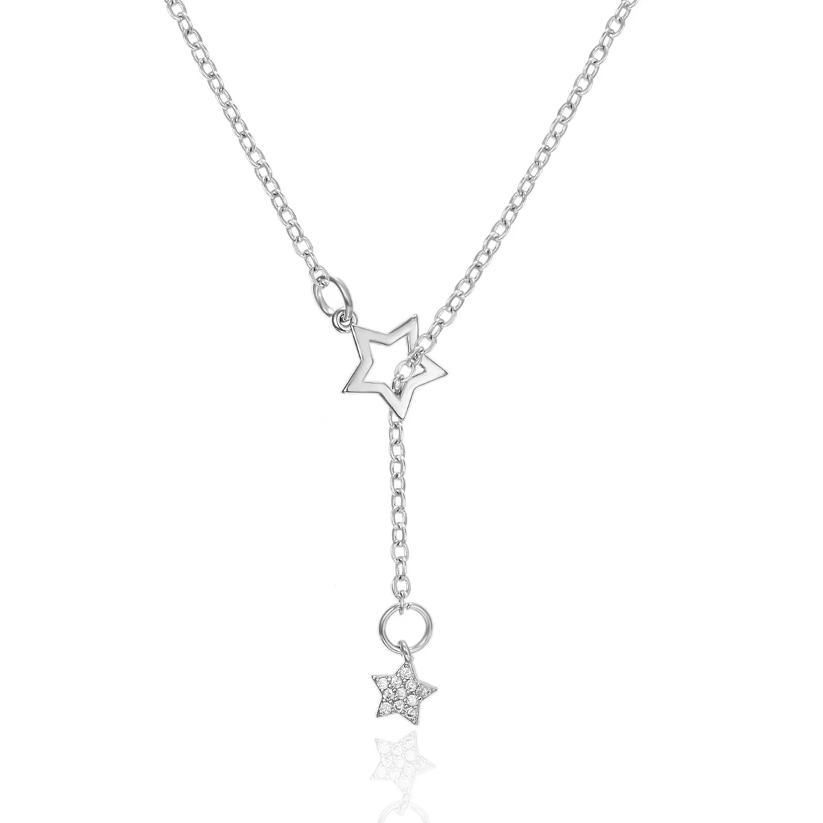 Simple Silver Color Hollow Star Necklace For Women Shiny Star Long Tassel Choker Clavicle Chain Wedding Party Birthday Jewelry