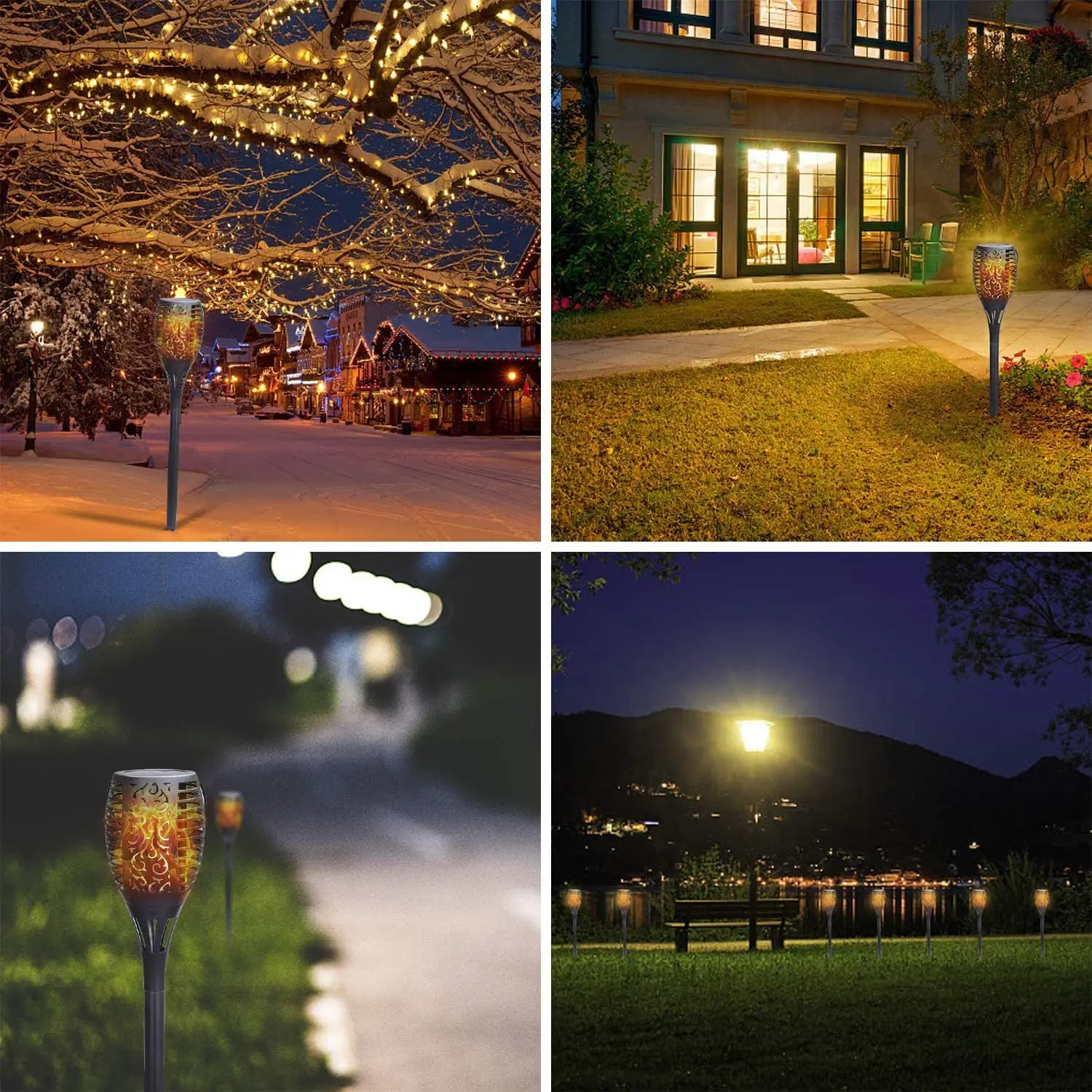 3. Easy Installation: No wiring required, simply install flame solar lights outside like yard, pathways, pool, garden, bench, patio, fence, deck, or outdoor events like party, camping, barbecue, wedding, Christmas, Halloween festival.