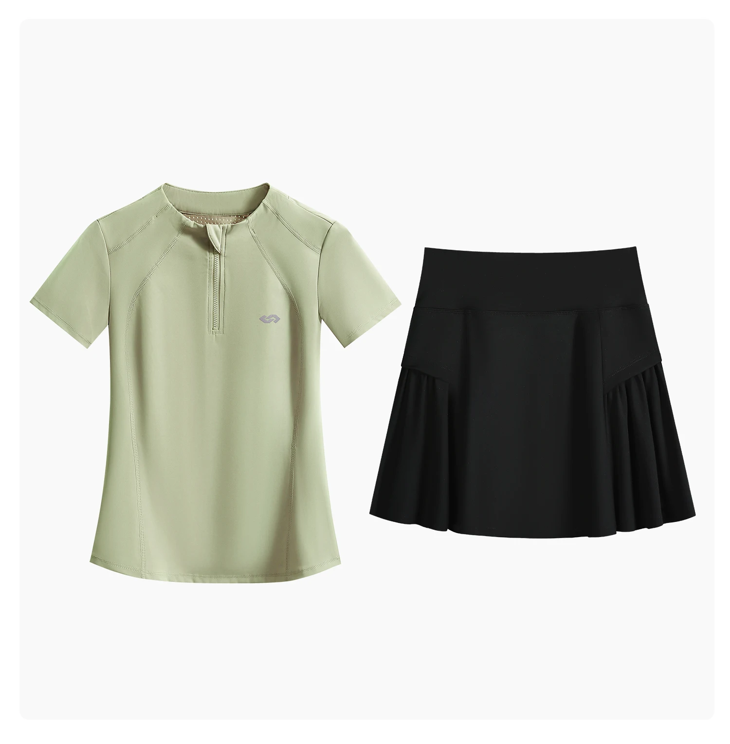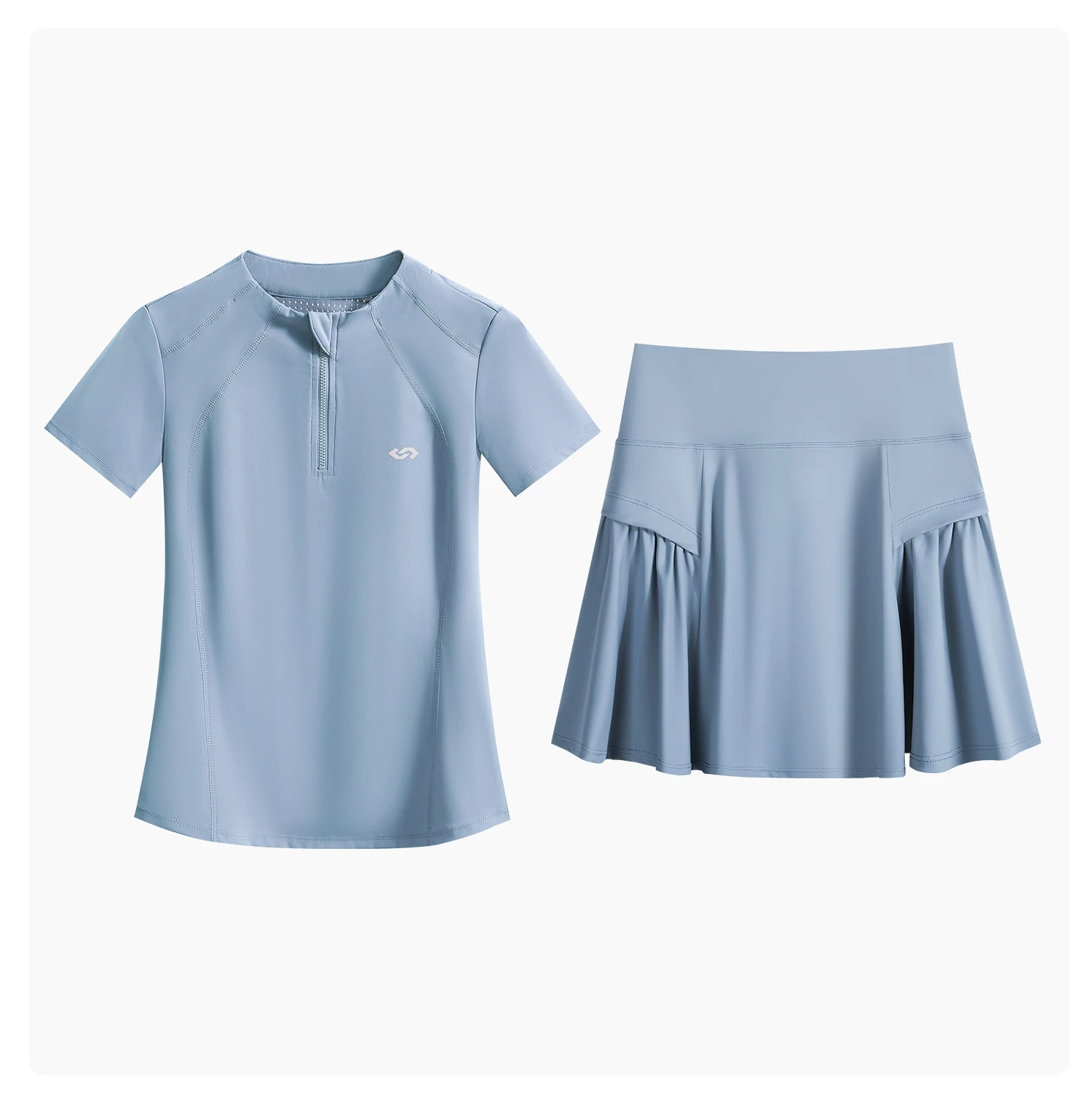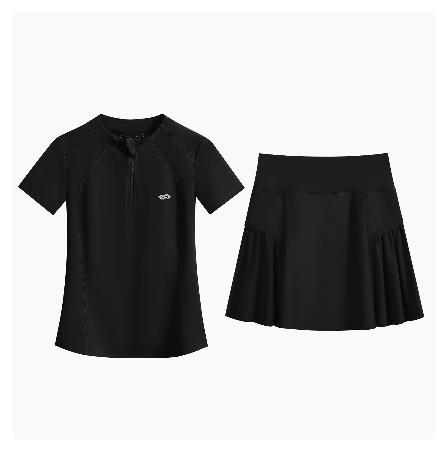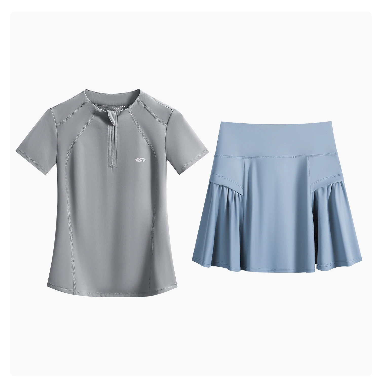 DRUR 2pcs Tennis Skirt Set Women Summer Sports Suit 2 Piece Fitness Top Skort Sets Ladies Golf Wear Set Sportswear Outfits 2025